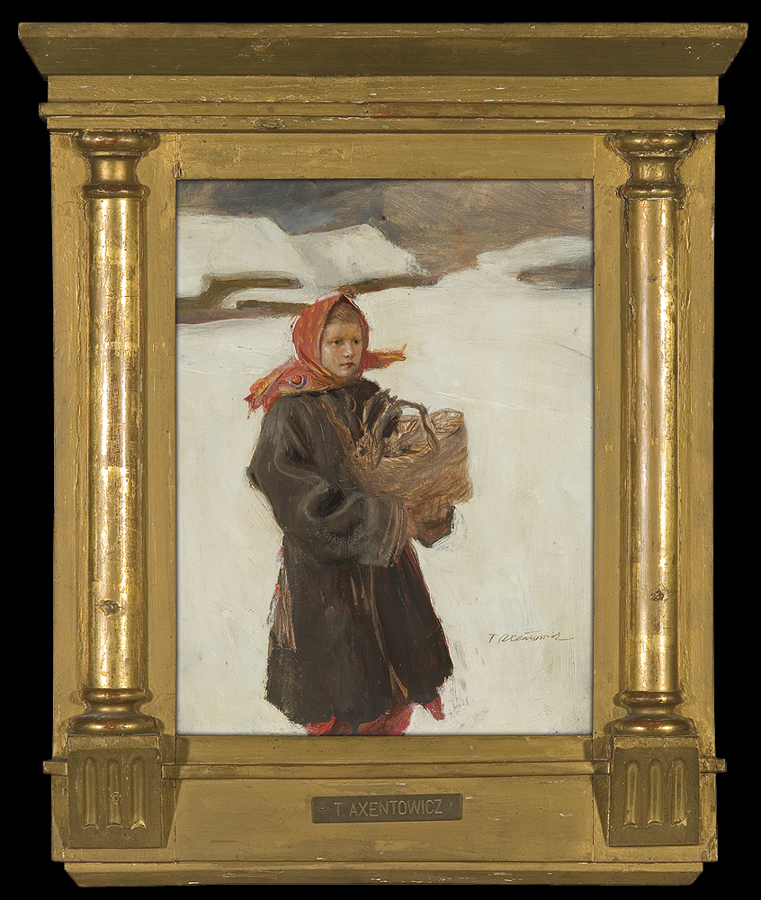 Teodor Axentowicz (Braszów w Siedmiogrodzie 1859 - Kraków 1938) – malarz, pastelista, litograf – był jednym z najbardziej znanych i cenionych malarzy polskich. Kształcił się w Akademii Sztuk Pięknych w Monachium pod kierunkiem Gabriela Hackla, Aleksandra Wagnera, Gyuli Benczúra. Studia uzupełniał w Paryżu, gdzie następnie przebywał przez lat kilkanaście. Brał udział w paryskich Salonach; w 1890 otrzymał członkostwo Société Nationale des Beaux-Arts. W tym czasie wielokrotnie wyjeżdżał również do Londynu. W 1895 powrócił do kraju i zamieszkał na stałe w Krakowie, powołany na profesora tamtejszej Szkoły Sztuk Pięknych (od 1900 Akademii). W uczelni tej nauczał nieprzerwanie do 1934, dwukrotnie pełniąc funkcję rektora (lata 1910-11 oraz 1927-28). Był jednym z członków-założycieli Towarzystwa Artystów Polskich „Sztuka”, członkiem wiedeńskiej „Secesji” i współpracownikiem jej pisma „Ver Sacrum”. Powodzenie przyniosły mu zwłaszcza idealizowane wizerunki wytwornych dam oraz wdzięczne portrety dziecięce. Malował też obrazy o tematyce rodzajowej; był jednym z pierwszych malarzy Huculszczyzny i Hucułów. Tworzył obrazy historyczne i kompozycje symboliczne związane z upływem czasu, przemijaniem, starością. We wczesnym, monachijskim okresie były to obrazy utrzymane w duchu akademickiego realizmu; na późniejszą twórczość artysty wywarło wpływ angielskie malarstwo XVIII w. oraz dzieła malarzy współczesnych - Boldoniego, Whistlera, Sargenta. Jego obrazy cechuje dekoracyjność, elegancja, świeżość subtelnej gamy kolorów i delikatna secesyjna stylizacja. Początkowo malował olejno i akwarelą, a po 1890 przede wszystkim mistrzowsko opanowaną techniką pastelu. Zajmował się ilustratorstwem i litografią, projektował plakaty wystaw „Sztuki”.