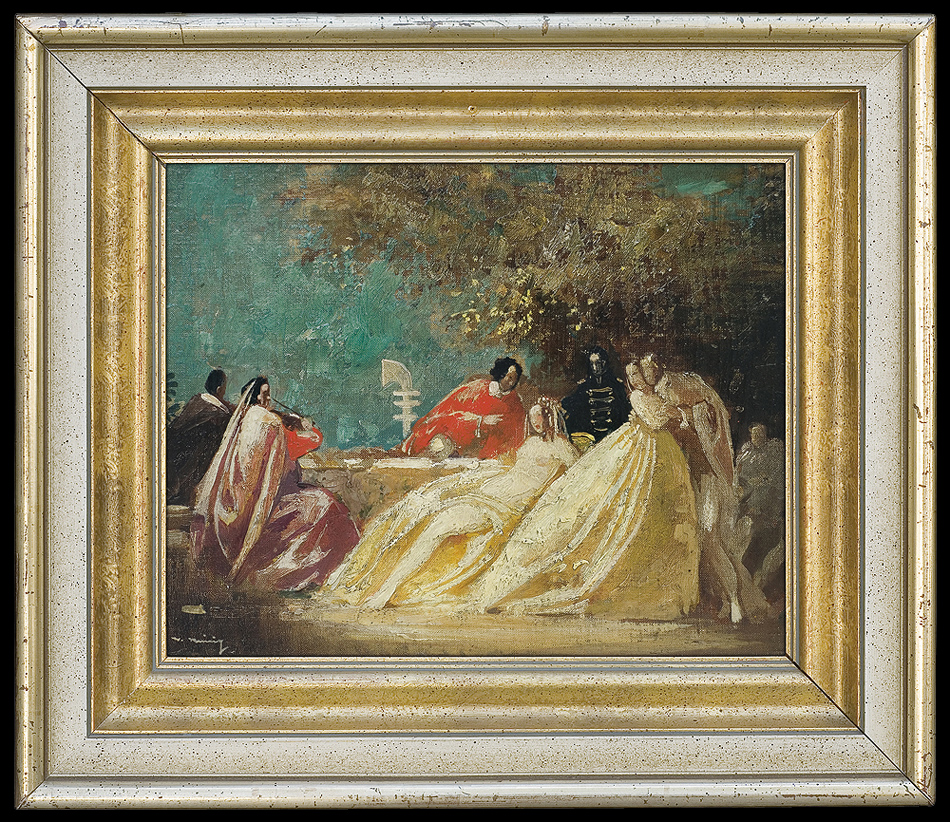 Walter Heimig (Wesel 1880 - Bad Ems 1955) - niemiecki malarz i litograf; studiował w ASP w Düsseldorfie u profesorów Clausa Meyera i Eduarda von Gebhardta. Później kształcił się jeszcze w Paryżu. W czasie I wojny światowej służył w armii na froncie wschodnim. W tym czasie wykonał wiele rysunków o zabarwieniu humorystycznym. Od 1907 uczestniczył w Wielkich Berlińskich Wystawach Sztuki, w dorocznych wystawach w Düsseldorfie, wystawiał też w Glaspalast w Monachium, w Kolonii, Wiesbaden, Stuttgarcie. Malował obrazy ołtarzowe do kościołów, m.in. Chrystusa Ukrzyżowanego do kościoła w Vohl-Marienhagen. Malował także barwne pejzaże, mariny, akty i sceny figuralne, w tym charakterystyczne damy w krynolinach, obrazy wyróżniające się wyrafinowanym kolorytem, będące dalekim nawiązaniem do osiemnastowiecznego malarstwa weneckiego (Pietro Longhi). Obrazy artysty znajdują się, m.in. w zbiorach muzeum w Düsseldorfie.