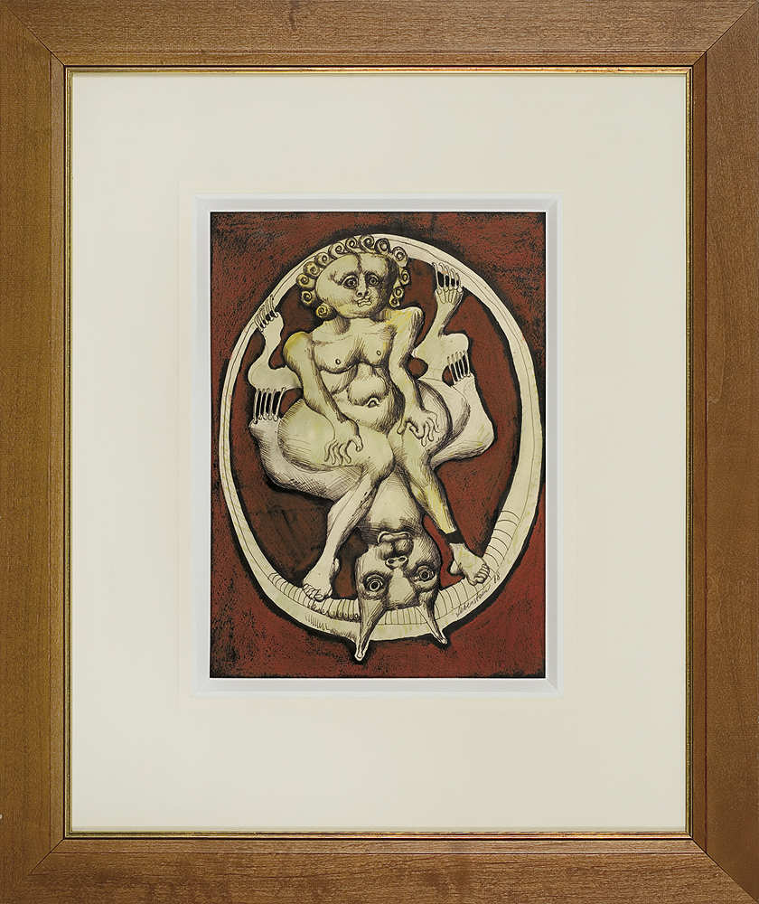 Jan Lebenstein (Brześć Litewski 1930 - Kraków 1999) w latach 1948-1954 studiował malarstwo w ASP w Warszawie pod kierunkiem prof. Eugeniusza Eibischa i Artura Nachta-Samborskiego. W 1955 wziął udział w wystawie w warszawskim Arsenale. Zaprzyjaźniony w czasie studiów z Mironem Białoszewskim, swą pierwszą wystawę indywidualną pokazał w 1956 w Teatrze na Tarczyńskiej. W 1959 zdobył Grand Prix de la Ville de Paris na I Biennale Młodych w Paryżu i w tym roku przeniósł się na stałe do Paryża. Po seriach "figur kreślonych" (na papierze milimetrowym) i "figur hieratycznych" z lat 1955-1958 maluje cykl "figur osiowych" (1958-1962), które wystawia w Paryżu i USA. Równolegle w 1960 zaczyna rysowane "karnety", rodzaj dziennika, który w przyszłości dostarczy motywów wykorzystanych w obrazach. W latach 1964-1965 maluje "Bestiarium", cykl fakturowych, archaizowanych stworów przypominających prehistoryczne wykopaliska. Bezpośrednio po nich wprowadza do swych obrazów postaci ludzkie i fantastyczne, odgrywające sceny ni to mitologiczne, ni to ze snu, często przesycone erotyką. W 1970 projektuje witraże dla Centre du Dialogue w Paryżu. W W 1971 otrzymuje obywatelstwo francuskie 1974 powstają gwasze inspirowane Folwarkiem zwierzęcym George'a Orwella. W latach 1976-1989 tworzy wyłącznie w technice gwaszu i pastelu, podejmując tematykę mitologiczną i zaczerpniętą z Biblii: cykle ilustracji do Księgi Hioba (wyd. 1979) i do Apokalipsy (wyd. 1986) w nowych przekładach Czesława Miłosza. W 1989 powraca do malarstwa olejnego (cykl "Pergamon"). Artysta otrzymał m. in. nagrodę Fundacji im. Alfreda Jurzykowskiego w 1976, Nagrodę Muzeum Archidiecezji Warszawskiej w 1985, Nagrodę im. Jana Cybisa w 1987.