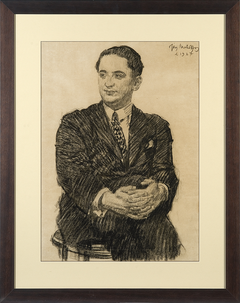 Józef Mehoffer (Ropczyce 1869-Wadowice 1946) - malarz, grafik, scenograf i pedagog; obok Stanisława Wyspiańskiego był najwybitniejszym polskim twórcą witraży i polichromii. Uczeń Jana Matejki i uczelni paryskich - Ecolé des Beaux Arts i Accadémie Colarossi - swą drogę twórczą rozpoczął w latach 1889-1891 od pracy nad polichromią Kościoła Mariackiego w Krakowie (pod kierunkiem Matejki). W roku 1895 otrzymał I nagrodę na międzynarodowym konkursie na witraże do kolegiaty we Fryburgu w Szwajcarii (ich realizacja trwała aż do 1934). W latach następnych otrzymywał różne inne zamówienia na witraże i polichromie, m.in. dla katedry na Wawelu i w Płocku, katedry Ormiańskiej we Lwowie, dla kościołów w Opawie, Onnes w Szwajcarii, w Jutrosinie, we Włocławku czy Przemyślu (nie wszystkie zrealizowane). Był wybitnym reprezentantem sztuki secesji. Tworzył dekoracyjnie traktowane portrety, w tym autoportrety i portrety żony, a także obrazy o zabarwieniu rodzajowym, które w latach 1895-1917 zyskiwały wymowę kompozycji symbolicznych. Malował także pejzaże łączące secesyjną dekoracyjność ze zdobyczami impresjonizmu. Z mistrzowską biegłością posługiwał się różnymi technikami - olejem, temperą, akwarelą i gwaszem - zajmował się także grafiką. Ostatnia wielka wystawa dzieł artysty, zatytułowana Opus magnum, odbyła się w roku 2000 w Muzeum Narodowym w Krakowie.