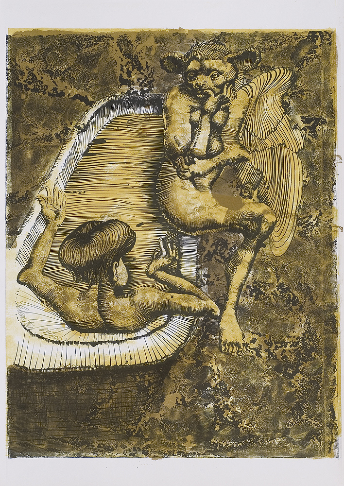 Jan Lebenstein (Brześć Litewski 1930 - Kraków 1999) w latach 1948-1954 studiował malarstwo w ASP w Warszawie pod kierunkiem prof. Eugeniusza Eibischa i Artura Nachta-Samborskiego. W 1955 wziął udział w wystawie w warszawskim Arsenale. Zaprzyjaźniony w czasie studiów z Mironem Białoszewskim, swą pierwszą wystawę indywidualną pokazał w 1956 w Teatrze na Tarczyńskiej. W 1959 zdobył Grand Prix de la Ville de Paris na I Biennale Młodych w Paryżu i w tym roku przeniósł się na stałe do Paryża. Po seriach "figur kreślonych" (na papierze milimetrowym) i "figur hieratycznych" z lat 1955-1958 maluje cykl "figur osiowych" (1958-1962), które wystawia w Paryżu i USA. Równolegle w 1960 zaczyna rysowane "karnety", rodzaj dziennika, który w przyszłości dostarczy motywów wykorzystanych w obrazach. W latach 1964-1965 maluje "Bestiarium", cykl fakturowych, archaizowanych stworów przypominających prehistoryczne wykopaliska. Bezpośrednio po nich wprowadza do swych obrazów postaci ludzkie i fantastyczne, odgrywające sceny ni to mitologiczne, ni to ze snu, często przesycone erotyką. W 1970 projektuje witraże dla Centre du Dialogue w Paryżu. W W 1971 otrzymuje obywatelstwo francuskie 1974 powstają gwasze inspirowane Folwarkiem zwierzęcym George'a Orwella. W latach 1976-1989 tworzy wyłącznie w technice gwaszu i pastelu, podejmując tematykę mitologiczną i zaczerpniętą z Biblii: cykle ilustracji do Księgi Hioba (wyd. 1979) i do Apokalipsy (wyd. 1986) w nowych przekładach Czesława Miłosza. W 1989 powraca do malarstwa olejnego (cykl "Pergamon"). Artysta otrzymał m. in. nagrodę Fundacji im. Alfreda Jurzykowskiego w 1976, Nagrodę Muzeum Archidiecezji Warszawskiej w 1985, Nagrodę im. Jana Cybisa w 1987.