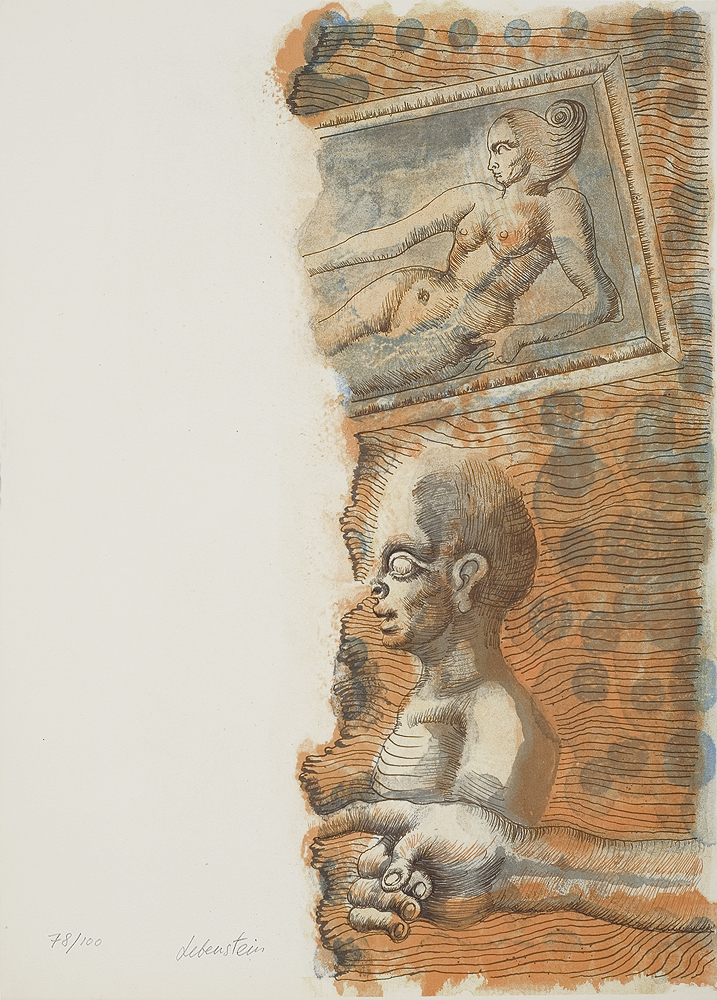 Jan Lebenstein (Brześć Litewski 1930 - Kraków 1999) w latach 1948-1954 studiował malarstwo w ASP w Warszawie pod kierunkiem prof. Eugeniusza Eibischa i Artura Nachta-Samborskiego. W 1955 wziął udział w wystawie w warszawskim Arsenale. Zaprzyjaźniony w czasie studiów z Mironem Białoszewskim, swą pierwszą wystawę indywidualną pokazał w 1956 w Teatrze na Tarczyńskiej. W 1959 zdobył Grand Prix de la Ville de Paris na I Biennale Młodych w Paryżu i w tym roku przeniósł się na stałe do Paryża. Po seriach "figur kreślonych" (na papierze milimetrowym) i "figur hieratycznych" z lat 1955-1958 maluje cykl "figur osiowych" (1958-1962), które wystawia w Paryżu i USA. Równolegle w 1960 zaczyna rysowane "karnety", rodzaj dziennika, który w przyszłości dostarczy motywów wykorzystanych w obrazach. W latach 1964-1965 maluje "Bestiarium", cykl fakturowych, archaizowanych stworów przypominających prehistoryczne wykopaliska. Bezpośrednio po nich wprowadza do swych obrazów postaci ludzkie i fantastyczne, odgrywające sceny ni to mitologiczne, ni to ze snu, często przesycone erotyką. W 1970 projektuje witraże dla Centre du Dialogue w Paryżu. W W 1971 otrzymuje obywatelstwo francuskie 1974 powstają gwasze inspirowane Folwarkiem zwierzęcym George'a Orwella. W latach 1976-1989 tworzy wyłącznie w technice gwaszu i pastelu, podejmując tematykę mitologiczną i zaczerpniętą z Biblii: cykle ilustracji do Księgi Hioba (wyd. 1979) i do Apokalipsy (wyd. 1986) w nowych przekładach Czesława Miłosza. W 1989 powraca do malarstwa olejnego (cykl "Pergamon"). Artysta otrzymał m. in. nagrodę Fundacji im. Alfreda Jurzykowskiego w 1976, Nagrodę Muzeum Archidiecezji Warszawskiej w 1985, Nagrodę im. Jana Cybisa w 1987.