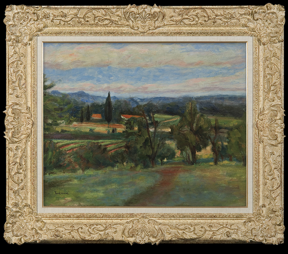 Józef Pankiewicz (Lublin 1866 – Marsylia 1940) malarz, grafik, pedagog; w latach 1884-1885 był uczniem Wojciecha Gersona i Aleksandra Kamińskiego w warszawskiej Klasie Rysunkowej. Następnie przez rok studiował w ASP w Petersburgu. Po powrocie mieszkał w Warszawie. Malował wówczas realistyczne sceny rodzajowe, wykonywał też ilustracje do warszawskich czasopism. W 1889 wraz z Władysławem Podkowińskim wyjechał do Paryża i tam uległ fascynacji impresjonizmem. U schyłku stulecia tworzył nokturny i kompozycje symboliczne. W latach następnych wiele podróżował po Europie malując martwe natury, pejzaże i portrety inspirowane sztuką japońską oraz malarstwem Renoira, Cezanne’e, Matisse’a. Lata 1914-1919 spędził w Hiszpanii. Od 1906 był profesorem krakowskiej ASP, a od 1925 kierował, powstałą pod jego protektoratem, paryską filią tej uczelni. Był nauczycielem wielu malarzy-kolorystów z tzw. grupy kapistów. W tym czasie stale mieszkał w Paryżu, a letnie miesiące spędzał na południu Francji. Zajmował się grafiką - jego prace należą do najwybitniejszych osiągnięć w tej dziedzinie sztuki polskiej. W roku 2006 w Muzeum Narodowym w Warszawie odbyła się wielka wystawa „Józef Pankiewicz. Życie i dzieło”, której towarzyszył obszerny katalog, będącym świetnie opracowaną, wyczerpującą monografią artysty i jego twórczości.