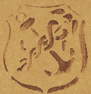 Na odwrocie, na tekturze znak wytwórcy podobrazia - stempel z kotwicą i kaduceuszem.