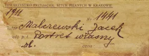1. TOWARZYSTWO PRZYJACIÓŁ SZTUK PIĘKNYCH W KRAKOWIE | /../ 1911 Nr 1441 | Autor Malczewski Jacek | Dzieło pt. Portret własny | [Rodza]j ol. Cena ...
