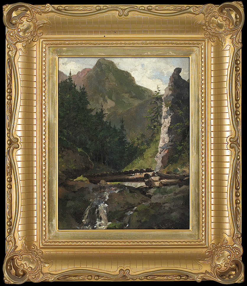 Kazimierz Alchimowicz (Dziembrów na Wileńszczyźnie 1840 - Warszawa 1916) młodzieńcze lata spędził w Wilnie i w okolicach Kijowa, gdzie pracował jako zarządca majątku ziemskiego. Za udział w powstaniu styczniowym został zesłany do Wierchutorii za Uralem i tam zaczął malować amatorsko, a nawet utrzymywał się ze sprzedaży obrazów o tematach religijnych. Właściwe studia malarskie rozpoczął dopiero po powrocie z zesłania (ok. 1869). Początkowo uczył się w warszawskiej Klasie Rysunkowej i w prywatnej pracowni Wojciecha Gersona, później - w latach 1873-1875 - w Akademii monachijskiej u Aleksandra Wagnera, gdzie kilkakrotnie wyróżniono go medalami za prace szkolne. Lata 1876-1878 spędził we Francji, zajmując się m.in. malowaniem na fajansie i porcelanie. Po powrocie do kraju zamieszkał na stałe w Warszawie i od 1890 uczył rysunku w prywatnej szkole B. Poświkowej. Uczestniczył w wielu wystawach, m.in. w Salonach paryskich; wystawiał też w Gandawie, Wiedniu , Berlinie, Monachium, Odessie, w Warszawie, Krakowie i we Lwowie. Jego obrazy nagradzano wielokrotnie; m.in. obraz Milda w 1890 odznaczono I nagrodą w konkursie im. W. Gersona i po roku małym złotym medalem na wystawie w Berlinie; obraz Pogrzeb Gedymina w roku 1888 otrzymał I nagrodę w Petersburgu, a rok później brązowy medal na Wystawie Powszechnej w Paryżu; w konkursach „Tygodnika Ilustrowanego” w 1893 I nagrodą uzyskał obraz Najem robotników, a w 1898 Świtezianka. Uznaniu krytyki towarzyszyło uznanie zbieraczy, wśród których obrazy Alchimowicza zawsze cieszyły się powodzeniem. W swoich obrazach chętnie sięgał do romantycznej, baśniowej tematyki zaczerpniętej najczęściej z dawnych, legendarnych dziejów Litwy. Tworzył także sceny z powstania styczniowego, obrazy rodzajowe, historyczne i religijne, portrety i pejzaże. Wielbiciel poezji Mickiewicza, namalował 12 obrazów na motywach z Pana Tadeusza i wykonał cykl ilustracji do tego poematu. Zajmował się również rzeźbą i malarstwem ściennym.