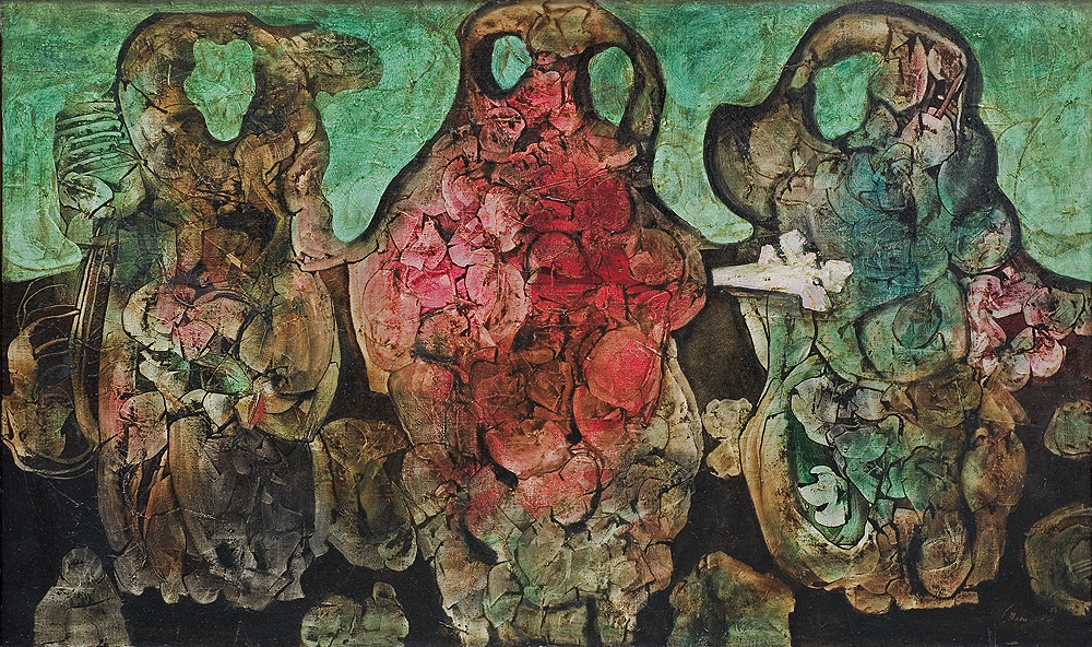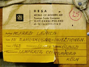 Alfred Lenica (Pabianice 1899 - Warszawa 1977) uczył się prywatnie rysunku i malarstwa w pracowniach Artura Hannytkiewicza i Piotra Kubowicza w Poznaniu (1925-1928). W latach 30. malował obrazy figuratywne, nawiązujące w stylistyce do kubizmu. Nieco później uległ wpływom surrealizmu, który, pomijając lata socrealizmu, stanie się dlań najpoważniejszym obszarem poszukiwań malarskich. Od połowy lat 40. utrzymywał stałe kontakty z kręgiem „Grupy Krakowskiej“, przyjaźnił się z Jerzym Kujawskim. Po przeniesieniu się do Poznania, w 1947 został współzałożycielem awangardowej grupy „4F+R“ (farba, forma, fantastyka, faktura + realizm). Jest autorem pierwszego polskiego obrazu taszystowskiego (Farby w ruchu, 1949, tempera). W okresie socrealizmu włączył się w nurt oficjalnej sztuki, pracując jednocześnie jako organizator życia artystycznego, prezes Okręgu Poznańskiego ZPAP (1948-1950) i jednocześnie kierownik Pracowni Sztuk Plastycznych tamże. W końcu lat 50. przeniósł się do Warszawy i również tu do 1969 pełnił kierownicze funkcje w ZPAP. W drugiej poł. lat 50. ponownie - po eksperymentach z lat 40. - uprawiał informel, malując chętnie techniką drippingu. Około 1958 wypracował indywidualny, charakterystyczny dlań styl wirujących, kolorowych, niekiedy kaligraficznie opracowanych form, które dynamicznie wypełniały pola obrazów. Tworzył je techniką zbliżoną do surrealistycznej dekalkomanii. Styl ten stał się znakiem rozpoznawczym artysty do końca życia. W swych obrazach nie unikał kształtów nawiązujących do form naturalnych (jego malarstwo nazywano „biologicznym“), a w latach 70. niekiedy włączał do kompozycji motywy figuralne. Wystawa retrospektywna artysty odbyła się w Galerii Zachęta w Warszawie w 1974.