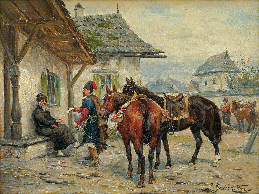 Ludwik Gędłek (Kraków 1847 - Wiedeń 1904) rozpoczął studia artystyczne w krakowskiej Szkole Sztuk Pięknych pod kierunkiem Władysława Łuszczkiewicza, a w latach 1872-1877 kontynuował je w Akademii wiedeńskiej u Eduarda Lichtenfelsa i Carla Wurzingera. Już w roku 1863 debiutował na wystawie w krakowskim TPSP, gdzie później wystawiał jeszcze kilkakrotnie. Stale mieszkał w Wiedniu, skąd wysyłał obrazy także na wystawy do TPSP we Lwowie, do Salonu Aleksandra Krywulta w Warszawie oraz do Drezna. Malował przede wszystkim sceny rodzajowe i batalistyczne z częstym motywem koni, a także krajobrazy, głównie z okolic Krakowa. Obrazy artysty znajdują się, m.in. w Muzeum Narodowym w Warszawie, Lwowskiej Galerii Obrazów i Polskim Muzeum w Chicago