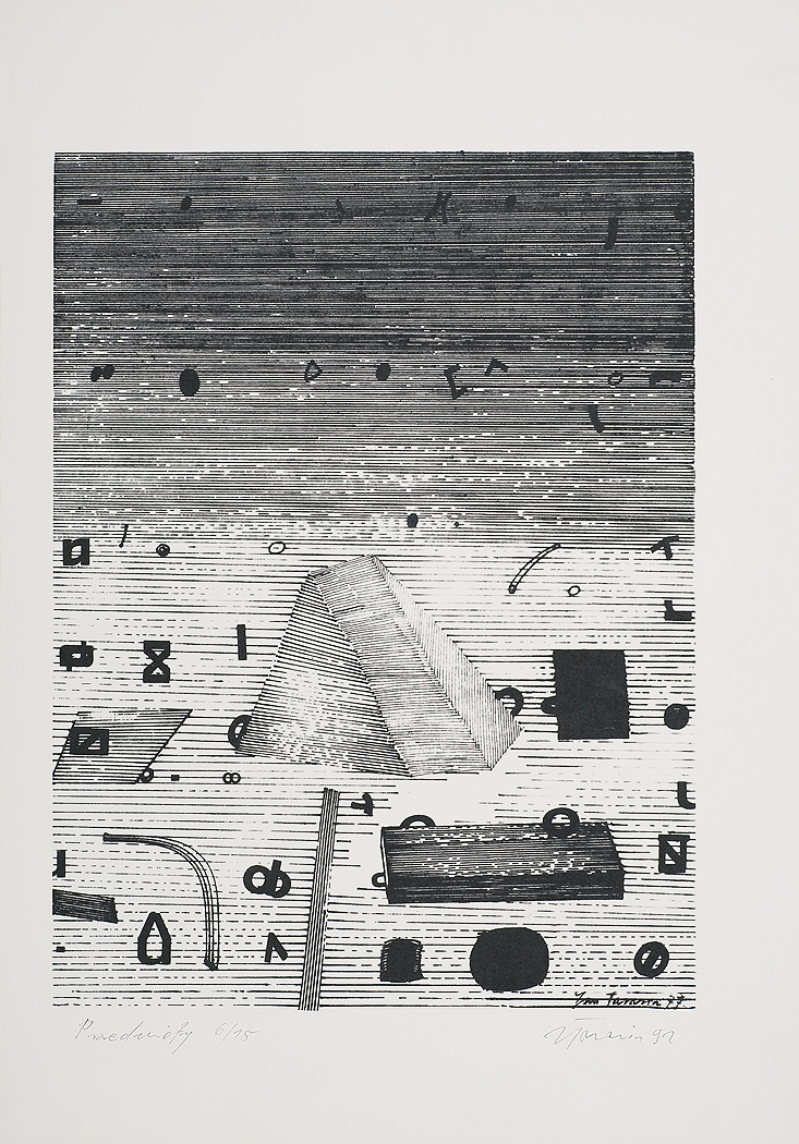 Jan Tarasin (Kalisz 11 IX 1926 - Warszawa 8 VIII 2009) studiował malarstwo w ASP w Krakowie pod kierunkiem prof. Zbigniewa Pronaszki (1946-1951). Jeszcze jako student zadebiutował na I Wystawie Sztuki Nowoczesnej w Krakowie w 1948/49. W połowie lat 50. stworzył cykle litografii: „Nowa Huta i jej mieszkańcy“, 1954, „Dom“, 1955). W pierwszym przeciwstawił się oficjalnemu optymizmowi, w drugim, operując symboliką martwej natury, zawarł treści egzystencjalne i odnoszące do niedawnego dramatu wojny. Po 1956 zaczął malować obrazy niefiguratywne. Układy wyodrębnionych elementów (określanych jako „przedmioty“) umieszczane były przez artystę na płaszczyźnie (cykl „Wnętrze“, 1957) ), lub w aluzyjnej przestrzeni (cykle „Uczta“, 1957, „Brzeg“, 1962-1964, „Przedmioty policzone“, od 1968, „Antykwariat“, 1968). Zasada ta utrzymuje się w jego malarstwie w następnych latach, różnice między okresami twórczości dotyczą sposobu opracowania „przedmiotów“ i ich usytuowania w przestrzeni obrazu lub wobec tła. Od lat 70. „przedmioty“ zmieniają się w graficzne, zwykle czarne znaki na jasnych tłach (cykl „Kolekcja“, od 1971). Tła z kolei bywają iluzyjnie przestrzenne, zróżnicowane walorowo, miękkie. W latach 90. artysta wrócił do kolorystycznego, bardziej malarskiego rozwiązywania zarówno znaków, jak i teł, często ciemnych lub przenikających się z „przedmiotami“ (cykl „Wylęgarnia przedmiotów“, 1992). Tarasin od 1962 jest członkiem „Grupy Krakowskiej“. W 1963-67 uczył na Wydziale Architektury Wnętrz krakowskiej ASP. W 1967 przeniósł się do Warszawy, w 1974 podjął pracę pedagogiczną na Wydziale Malarstwa ASP w Warszawie. W 1987-90 był rektorem tej uczelni. W 1976 otrzymał Nagrodę Krytyki Artystycznej im. Cypriana Kamila Norwida, w 1984 Nagrodę im. Jana Cybisa.; Nagroda na MB Sztuki w San Marino 1965. Równolegle z malarstwem zajmował się rysunkiem i grafiką - do lat 60. litografią, od 1974 serigrafią. W 1974-1981 wydał 8 autorskich „Zeszytów“ z serigrafiami i własnymi tekstami. W 1995 w Galerii Zachęta odbyła się wystawa artysty, której towarzyszył monograficzny katalog.