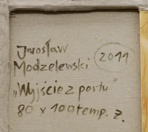Jarosław Modzelewski (Warszawa 1955, mieszka w Warszawie) studiował malarstwo w ASP w Warszawie w latach 1975-1980, uzyskując dyplom w pracowni Stefana Gierowskiego. Od 1982 pracuje jako pedagog na macierzystym wydziale. W 1982 był współzałożycielem „Gruppy”, najważniejszego ugrupowania nurtu nowej ekspresji lat 80., działającego do 1992. W latach 1991-1996 wspólnie z Markiem Sobczykiem prowadził prywatną Szkołę Sztuki w Warszawie. Od wielu lat współpracuje z Galerią Zderzak w Krakowie. W początkowym okresie twórczości skłaniał się ku abstrakcji, wykorzystywał uproszczone znaki i emblematy oraz sylwetki odbite z szablonu. W 1985 namalował cykl oparty na ilustracjach do podręczników języka rosyjskiego, obrazujący proste czynności, których czasownikowe określenia stanowią tytuły prac. W 1986-1989 powstawały obrazy utrzymane w konwencji realistycznej, jednak zarazem o surrealnej atmosferze uzyskiwanej różnymi metodami, np. przez dublowanie figur, ukazywanie postaci w sytuacji niepewności czy zagrożenia, zabiegi z przestrzenią. W grupie obrazów z 1988 artysta rezygnuje z postaci ludzkiej na rzecz wyjątkowego nasycenia emocją samej przestrzeni pejzaży i wnętrz. Około 1990 wraca do kompozycji akcentujących czynności wykonywane przez postaci, które często umieszczone są w pustej, zaledwie zasugerowanej, acz dominującej przestrzeni. Odrealnienia i monumentalności dodaje tym obrazom płaskie i rozległe kładzenie koloru.