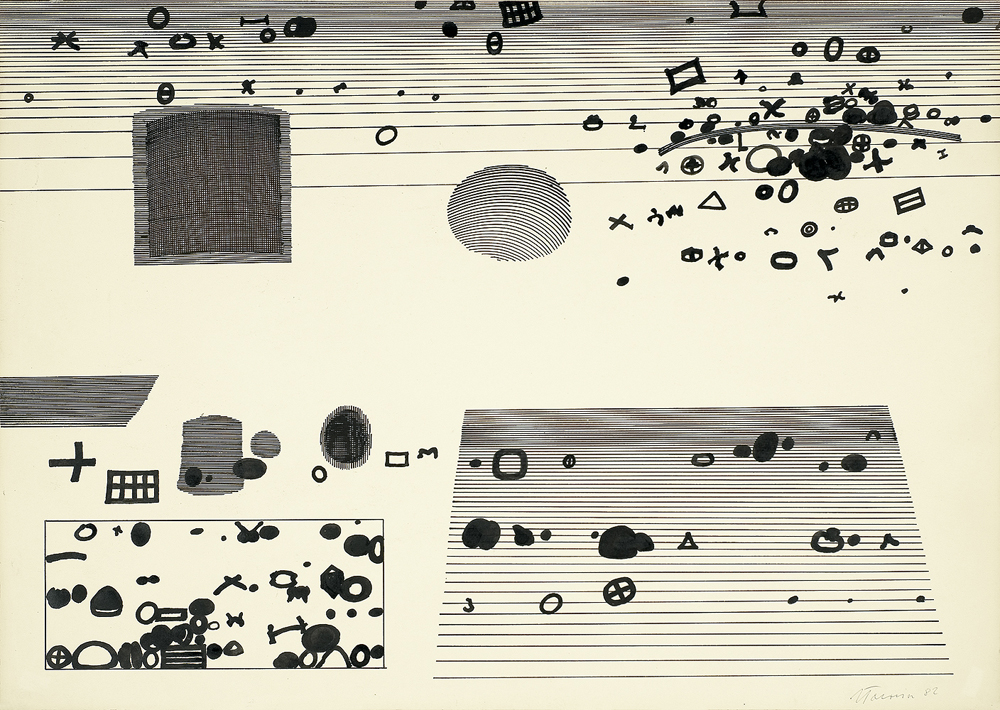 Jan Tarasin (Kalisz 11 IX 1926 - Warszawa 8 VIII 2009) studiował malarstwo w ASP w Krakowie pod kierunkiem prof. Zbigniewa Pronaszki (1946-1951). Jeszcze jako student zadebiutował na I Wystawie Sztuki Nowoczesnej w Krakowie w 1948/49. W połowie lat 50. stworzył cykle litografii: „Nowa Huta i jej mieszkańcy“, 1954, „Dom“, 1955). W pierwszym przeciwstawił się oficjalnemu optymizmowi, w drugim, operując symboliką martwej natury, zawarł treści egzystencjalne i odnoszące do niedawnego dramatu wojny. Po 1956 zaczął malować obrazy niefiguratywne. Układy wyodrębnionych elementów (określanych jako „przedmioty“) umieszczane były przez artystę na płaszczyźnie (cykl „Wnętrze“, 1957) ), lub w aluzyjnej przestrzeni (cykle „Uczta“, 1957, „Brzeg“, 1962-1964, „Przedmioty policzone“, od 1968, „Antykwariat“, 1968). Zasada ta utrzymuje się w jego malarstwie w następnych latach, różnice między okresami twórczości dotyczą sposobu opracowania „przedmiotów“ i ich usytuowania w przestrzeni obrazu lub wobec tła. Od lat 70. „przedmioty“ zmieniają się w graficzne, zwykle czarne znaki na jasnych tłach (cykl „Kolekcja“, od 1971). Tła z kolei bywają iluzyjnie przestrzenne, zróżnicowane walorowo, miękkie. W latach 90. artysta wrócił do kolorystycznego, bardziej malarskiego rozwiązywania zarówno znaków, jak i teł, często ciemnych lub przenikających się z „przedmiotami“ (cykl „Wylęgarnia przedmiotów“, 1992). Tarasin od 1962 jest członkiem „Grupy Krakowskiej“. W 1963-67 uczył na Wydziale Architektury Wnętrz krakowskiej ASP. W 1967 przeniósł się do Warszawy, w 1974 podjął pracę pedagogiczną na Wydziale Malarstwa ASP w Warszawie. W 1987-90 był rektorem tej uczelni. W 1976 otrzymał Nagrodę Krytyki Artystycznej im. Cypriana Kamila Norwida, w 1984 Nagrodę im. Jana Cybisa.; Nagroda na MB Sztuki w San Marino 1965. Równolegle z malarstwem zajmował się rysunkiem i grafiką - do lat 60. litografią, od 1974 serigrafią. W 1974-1981 wydał 8 autorskich „Zeszytów“ z serigrafiami i własnymi tekstami. W 1995 w Galerii Zachęta odbyła się wystawa artysty, której towarzyszył monograficzny katalog.