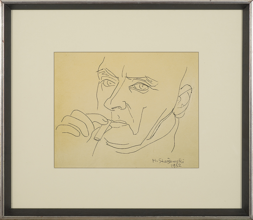 Henryk Stażewski (Warszawa 9 I 1894 - Warszawa 10 VI 1988) studiował w Szkole Sztuk Pięknych w Warszawie w latach 1913-1920. W początkach kariery malował martwe natury. Przejściowo wystawiał z ugrupowaniem „Formiści” (1922). Wziął też udział w Wystawie Nowej Sztuki w Wilnie w 1923. O tego czasu tworzył pod wpływem konstruktywizmu. Obok kompozycji malarskich trudnił się grafiką książkową, projektował wnętrza, sprzęty, a także scenografie – były to w większości prace teoretyczne i studyjne. Polskie i międzyna-rodowe ugrupowania awangardy, z którymi wystawiał i współpracował jako publicysta, to kolejno: „Blok” (1924-1926), „Praesens” (1926-1930), „Cercle et Carré” (1929-1931), „Abstraction-Création” (1931-1939), „a. r.” (1932-1939). Należał też do Koła Artystów Grafików Reklamowych (1933-1939). W 1930 był współorganizatorem zbiórki dzieł artystów międzynarodowej awangardy przeznaczonych dla muzeum łódzkiego (obecnie w Muzeum Sztuki w Łodzi). Po II wojnie mieszkał i działał w Warszawie. W latach 40. i 50. podejmował próby dostosowania się do postulatów sztuki figuratywnej. Z tego okresu pochodzą rysunkowe i malarskie kompozycje o tematyce pracy, budowy, a także projekty monumentalne. Po 1956, uznawany powszechnie za patrona polskiej awangardy, uprawiał już wyłącznie abstrakcję o konstruktywistycznym rodowodzie. Tworzył cykle prac, będących studiami płaszczyzn, linii, kolorów w różnych układach względem siebie. Przy pozorach chłodnej perfekcji umiał nasycić je emocją bezpośredniego dotknięcia, śladu ręki. Obok malarstwa i form pochodnych, jak collages, reliefy, multiple, tworzył formy przestrzenne i grafikę (autoryzował serigraficzne repliki swoich prac). Był laureatem wielu nagród i odznaczeń krajowych i zagranicznych, w tym Nagrody Herdera, Wiedeń 1972.