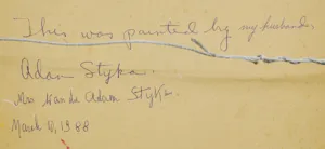 Adam Styka (Kielce 1890 - Nowy Jork 1959) – syn malarza Jana i młodszy brat Tadeusza Styki – był malarzem-orientalistą. Początkowo studiował matematykę i inżynierię, później rozpoczął studia w École Nationale des Beaux Arts w Paryżu (1908-1912). Podczas I wojny światowej służył w Błękitnej Armii gen. J. Hallera – najpierw we Francji (medal za bitwę pod Verdun), później w Polsce. Jako malarz zaczął od scen rodzajowych, ale po podróży do Afryki Północnej tworzył przede wszystkim obrazy o tematyce orientalnej. Motywy znajdował podczas, wielokrotnie powtarzanych, wypraw do Maroka, Algieru, Tunisu i Egiptu. Swoje prace wystawiał głównie za granicą, w okresie międzywojennym miał też kilka wystaw w kraju, m.in. w warszawskiej Zachęcie. Pokazy te cieszyły się zawsze ogromnym powodzeniem u publiczności, a wystawione obrazy znajdowały wielu chętnych nabywców. Adam Styka malował też obrazy religijne (znany obraz Chrystusa Króla; 1944; dla oo. palotynów w Warszawie; zniszczony w pożarze w roku 2007) i zajmował się ilustracją książkową, m.in. opracował ilustracje do „W pustyni i w puszczy” H. Sienkiewicza. Po II wojnie światowej artysta mieszkał i tworzył w Stanach Zjednoczonych – malował pejzaże i mieszkańców Meksyku czy Arizony oraz - szczególnie liczne – obrazy o tematyce religijnej. Kierował również pracami konserwatorskimi przy panoramie Golgota, dzieła jego ojca, Jana Styki (odsłonięta po renowacji w roku 1951 w Los Angeles).