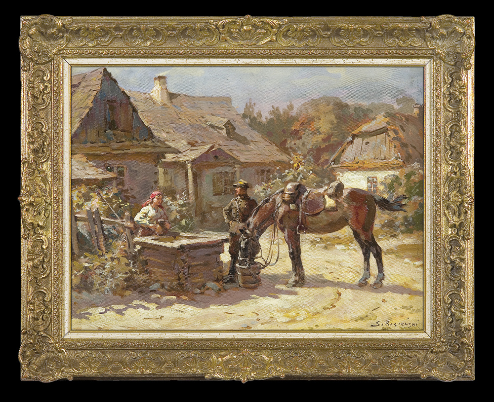 Stanisław Bagieński (Warszawa 1876 - Warszawa 1948) - popularny malarz-batalista, ilustrator - naukę malarstwa rozpoczął pod kierunkiem ojca Feliksa Bagieńskiego, a następnie uczył się w u Wojciecha Gersona w warszawskiej Klasie Rysunkowej. Studia kontynuował w Akademii w Monachium (1901-1903) oraz w Paryżu. Stale mieszkał w Warszawie, gdzie, począwszy od r. 1900, wielokrotnie wystawiał w Towarzystwie Zachęty Sztuk Pięknych. Malował sceny rodzajowe, pejzaże, a przede wszystkim obrazy batalistyczne gloryfikujące bohaterstwo polskiego żołnierza. Jako ilustrator współpracował z warszawskimi czasopisma-mi „Tygodnikiem Ilustrowanym”, „Światem”, „Biesiadą Literacką”. Ilustrował też książki, m.in. historyczne powieści Walerego Przyborowskiego.