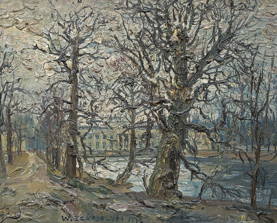 Włodzimierz Zakrzewski (Petersburg 1916 - Warszawa 1992) naukę rysunku i malarstwa rozpoczął już w latach gimnazjalnych. Następnie kształcił się w warszawskiej Szkole Sztuk Zdobniczych i Malarstwa pod kierunkiem E. Butrymowicza. W czasie II wojny światowej przebywał w Związku Radzieckim - w latach 1941-1942 uczył się w Moskwie, projektował plakaty i malował obrazy o tematyce wojennej. W roku 1943 wyjeżdżał na Ałtaj. Po wojnie wrócił do kraju; w latach 1950-1952 był profesorem warszawskiej Akademii Sztuk Pięknych. W latach następnych całkowicie poświęcił się malarstwu. Podczas częstych podróży - m.in. do Włoch, Francji, Stanów Zjednoczonych - malował pejzaże i weduty z wielu odwiedzanych miast. Wystawiał dużo, tak w kraju jak i za granicą - w Sofii, Budapeszcie, Dreźnie, Paryżu, Rzymie, Mediolanie - zbierając pochlebne recenzje krytyków. Po wystawie w Paryżu pisano o nim, m.in.: „malarz czuły na materię i barwę wystawia bezpretensjonalne płótna, zadumane, pełne wigoru w fakturze, świadczące o żywej reakcji na światło...“ (cyt. za katalogiem wystawy w warszawskiej Galerii ZPAP w roku 1963).