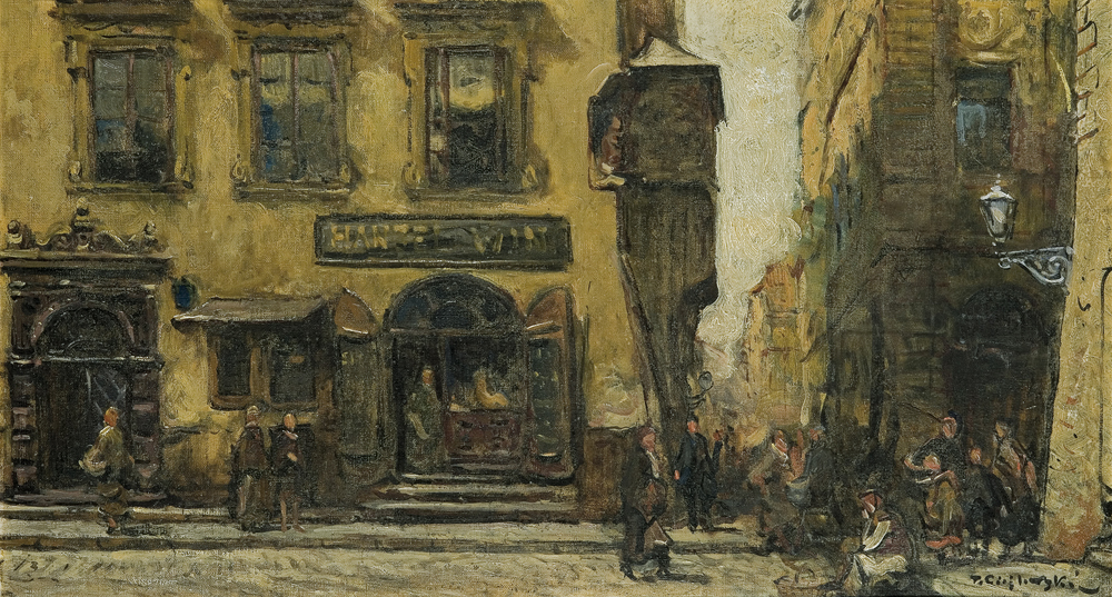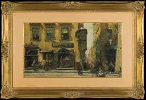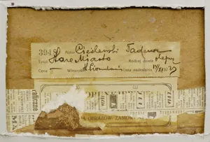Tadeusz Cieślewski (Warszawa 1870 – Warszawa 1956) - ojciec grafika Tadeusza Cieślewskiego - studia artystyczne rozpoczął w warszawskiej Szkole Rysunkowej pod kierunkiem W. Gersona i J. Kauzika. W latach 1895-1896 kształcił się w Paryżu w Académie Vitti oraz u E. Aman-Jeana i R. Collina. W 1900 podróżował do Włoch i krótko studiował w Akademii rzymskiej. Stale mieszkał w Warszawie, aktywnie uczestnicząc w życiu artystycznym miasta. Debiutował na wystawie w warszawskiej Zachęcie w roku 1897; w 1898 otrzymał srebrny medal w konkursie na serię pocztówek warszawskich. Od 1906 był członkiem TZSP kilkakrotnie pełniąc funkcję wiceprezesa tego Towarzystwa. W 1929 otrzymał srebrny medal TZSP, w roku 1935 wyróżniono go dyplomem honorowym. Był współzałożycielem stowarzyszenia Sztuka i Rzemiosło (1904), należał do ugrupowania Pro Arte. Dużo wystawiał; przede wszystkim w Warszawie – w Zachęcie oraz, m.in. w Salonach Richlinga, Garlińskiego, Salonie Sztuki. Brał udział w wystawach sztuki polskiej za granicę – w 1924 w Moskwie, w 1936 na XX Biennale w Wenecji, w 1939 w Nowym Jorku. W czasie powstania warszawskiego utracił większość swego dorobku artystycznego. Kilka lat powojennych spędził w Piotrkowie, ale w 1948 wrócił do Warszawy. Był przede wszystkim malarzem architektury, szczególnie chętnie malował widoki ulic i placów Warszawy. Rzadziej tworzył pejzaże, martwe natury, portrety i kompozycje figuralne. Jego ulubioną techniką była akwarela, ale malował także olejno i pastelami. Dwukrotnie – w 1928 i 1951 – otrzymał nagrodę miasta Warszawy; odznaczony był także Złotym Krzyżem Zasługi oraz Krzyżem Oficerskim i Komandorskim orderu Odrodzenia Polski.