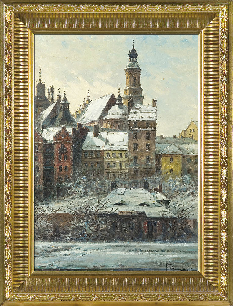 Władysław Chmieliński (Warszawa 1911 - Warszawa 1979) był malarzem związanym z Warszawą, gdzie stale mieszkał i pracował. W latach 1926-1931 studiował w warszawskiej Miejskiej Szkole Sztuk Zdobniczych i Malarstwa (dawna Klasa Rysunkowa). Wiodącym tematem jego obrazów były widoki miejskie, malowane olejno i akwarelą. W latach 1935-1938 stworzył cykl akwarel przedstawiających obiekty polskiej architektury; wśród nich, widoki Sandomierza, Krakowa, Kazimierza nad Wisłą, a także wnętrza zabytkowych kościołów czy pałaców, m.in. Zamku Królewskiego w Warszawie i Pałacu w Wilanowie. Malował także pejzaże i wiejskie sceny rodzajowe – kuligi, sanny, zaprzęgi, wesela, konie na tle krajobrazu. W latach 1967-1969 wyjeżdżał na dłuższe pobyty do Danii. W latach 1936-1939 artysta używał także pseudonimu „Władysław Stachowicz”.