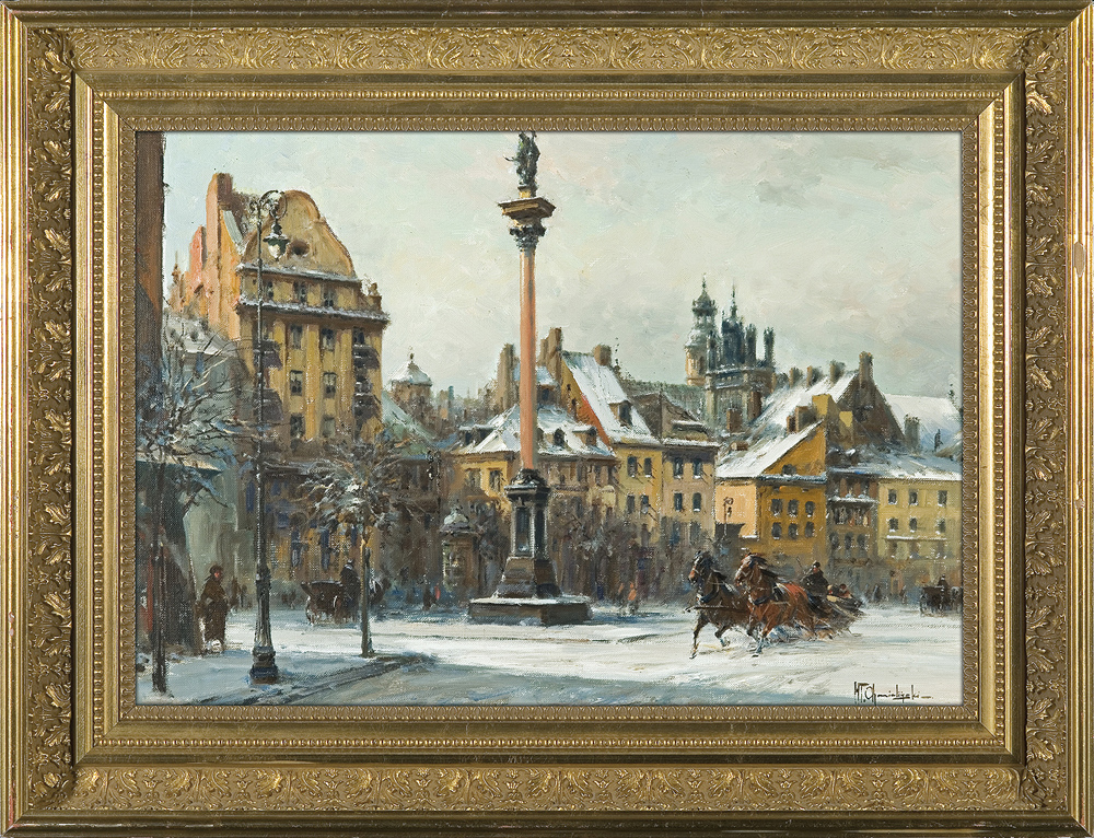 Władysław Chmieliński (Warszawa 1911 - Warszawa 1979) był malarzem związanym z Warszawą, gdzie stale mieszkał i pracował. W latach 1926-1931 studiował w warszawskiej Miejskiej Szkole Sztuk Zdobniczych i Malarstwa (dawna Klasa Rysunkowa). Wiodącym tematem jego obrazów były widoki miejskie, malowane olejno i akwarelą. W latach 1935-1938 stworzył cykl akwarel przedstawiających obiekty polskiej architektury; wśród nich, widoki Sandomierza, Krakowa, Kazimierza nad Wisłą, a także wnętrza zabytkowych kościołów czy pałaców, m.in. Zamku Królewskiego w Warszawie i Pałacu w Wilanowie. Malował także pejzaże i wiejskie sceny rodzajowe – kuligi, sanny, zaprzęgi, wesela, konie na tle krajobrazu. W latach 1967-1969 wyjeżdżał na dłuższe pobyty do Danii. W latach 1936-1939 artysta używał także pseudonimu „Władysław Stachowicz”.