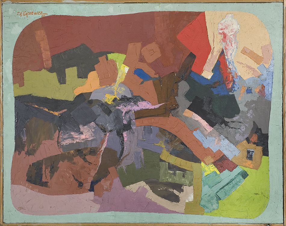 Tadeusz Ryszard Gąsiewicz (Warszawa 5 VI 1897 – Żyrardów 28 I 1967) - artysta malarz (członek Związku Polskich Artystów Plastyków Okręgu Warszawskiego, legitymacja nr 5638), dekorator, litograf i grafik. Uczęszczał do gimnazjum rosyjskiego, po ukończeniu którego zaczął studiować w Akademii Sztuk Pięknych im. Aleksandra III w Moskwie. Należał do przedwojennej grupy malarzy awangardystów. Jego obrazy były wystawiane w Instytucie Propagandy Sztuki w Warszawie i w 1930 na Międzynarodowej Wystawie w Belgii, na której został wyróżniony Złotym Medalem za całokształt twórczości. Duży wpływ na jego malarstwo wywarły prace Józefa Rapackiego, które oglądał w dzieciństwie. Obrazy zarówno realistyczne, jak i abstrakcyjne, malował tylko techniką olejną. W czasie II Wojny Światowej zaginął dotychczasowy dorobek artysty. Po wojnie brał jeszcze udział w kilku wystawach, m.in. w 1948 w Domu Włókniarza, w 1962 w warszawskich Łazienkach i w Pałacu Kultury i Nauki, w 1963 w Muzeum Historii Ruchu Robotniczego w Żyrardowie (indywidualnie), w 1966 - w Zachęcie w Warszawie (XI Wystawa malarstwa i grafiki ZPAP). W 1969 w Galerii Sztuki MDM w Warszawie oraz w 1972 w Muzeum Historii Ruchu Robotniczego w Żyrardowie pokazywano wystawę pośmiertną artysty.