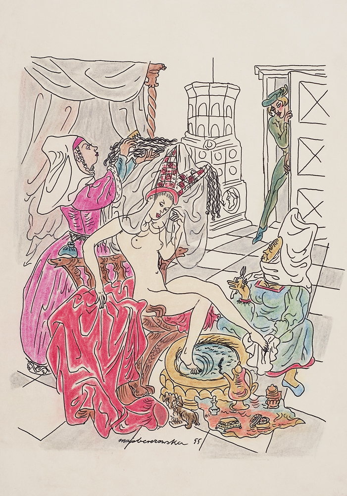Maja Berezowska - malarka i ilustratorka - rysunku uczyła się w Petersburgu u Mikołaja Roericha, następnie studiowała w Monachium i w Krakowie u Józefa Pankiewicza i Leona Wyczółkowskiego. W roku 1916 debiutowała ilustracjami do opowiadania Kornela Makuszyńskiego. Współpracowała z wieloma wydawcami, zamieszczała swoje rysunki w pismach satyrycznych. Od 1924 należała do ugrupowania „Rytm”. Rozgłos przyniosły jej ilustracje do Dekamerona Boccacia (1930). Około 1932 wyjechała do Paryża i tam nawiązała współpracę z czasopismami francuskimi. W Paryżu miała trzy wystawy indywidualne, a jej prace cieszyły się dużym wzięciem. W 1937 wróciła do Warszawy. W czasie wojny była więziona na Pawiaku, następnie wywieziona do Ravensbrück. Powodem był cykl 11 rysunków Miłosne przygody słodkiego Adolfa zamieszczony w 1935 r. w „Ici Paris”. W 1947 wróciła do Warszawy i umieszczała rysunki w wielu czasopismach.