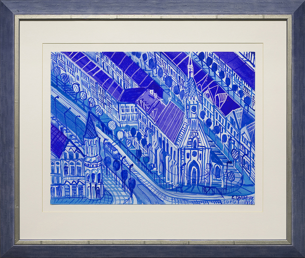 Edward Dwurnik (Radzymin 19 IV 1943 - Warszawa 28 X 2018) studiował malarstwo w ASP w Warszawie (1963-1970), jednak jako swego „mistrza“ wymienia Nikifora. Jego to prace, zobaczone po raz pierwszy w 1965, zainspirowały ówczesnego studenta III roku do narysowania pierwszych prac z cyklu „Podróże autostopem“, które kontynuował w nastepnych latach. W 1972-1978 powstawał cykl „Sportowcy“, w którym portretowane były, dodajmy - kąśliwie, typowe postaci z lat 70. Równolegle od 1975 powstawał cykl „Robotnicy“, który kulminował w okresie „Solidarności“ 1980-1981. Za prace z tego cyklu Dwurnik otrzymał w 1981 Nagrodę Krytyki Artystycznej im. Cypriana Kamila Norwida, natomiast za obrazy z cyklu „Warszawa“ (1981), proroczo zapowiadające stan wojenny - Nagrodę Kulturalną „Solidarności“ podziemnej w 1983. W latach 80. malarstwo Dwurnika przybrało wyraz ekspresyjny i dramatyczny. Powstające w tej dekadzie obrazy miały niejednokrotnie wymowę polityczną, przybierały też kostium historyczny, tak czy inaczej odnoszący się do współczesnych spraw i realiów. Cykl „Droga na Wschód“ (1989-91) upamiętniał ofiary stalinizmu, natomiast cykl „Od Grudnia do Czerwca“ (1990-94) - ofiary stanu wojennego. Zarówno ideowe, jak i czysto malarskie walory tych prac przyniosły artyście ogromne uznanie, zarówno w kraju jak i za granicą. Jego wyrazem była prestiżowa nagroda Fundacji Coutts & Co w Zurychu (1992). W latach 90. powstają cykle będące kontynuacją „Podróży autostopem“: „Niebieskie miasta“ (od 1993) i „Diagonale“ (od 1996), jak również kompozycje nowego typu, jak widoki morskie (cykl „Błękitne“, 1992-93) czy cykl „Wyliczanka“ (1996-99). Artysta wiele wystawia, miał ok. 100 wystaw indywidualnych w Polsce i za granicą, brał też udział w licznych wystawach i festiwalach krajowych i międzynarodowych, m.in.: X Biennale Sztuki Współczesnej, Menton 1974, Documenta 7, Kassel 1982, 5th Biennale, Sydney 1985, XIX Biennale Sztuki, Sao Paulo 1987; Olimpiada Sztuki, Seul 1988. Równolegle z malarstwem uprawiał rysunek, collage, grafikę warsztatową (litografia, techniki metalowe, kserografia, stemple) i użytkową (ilustracja, plakaty do własnych wystaw indywidualnych).