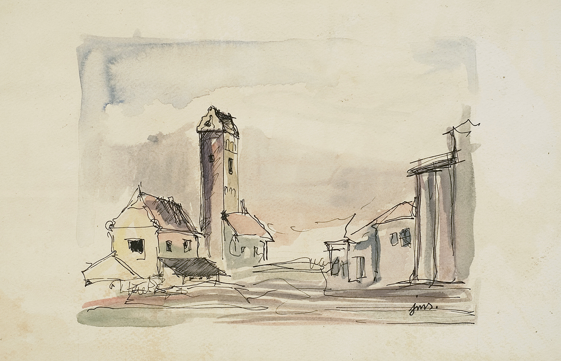 tusz pióro, akwarela, papier
