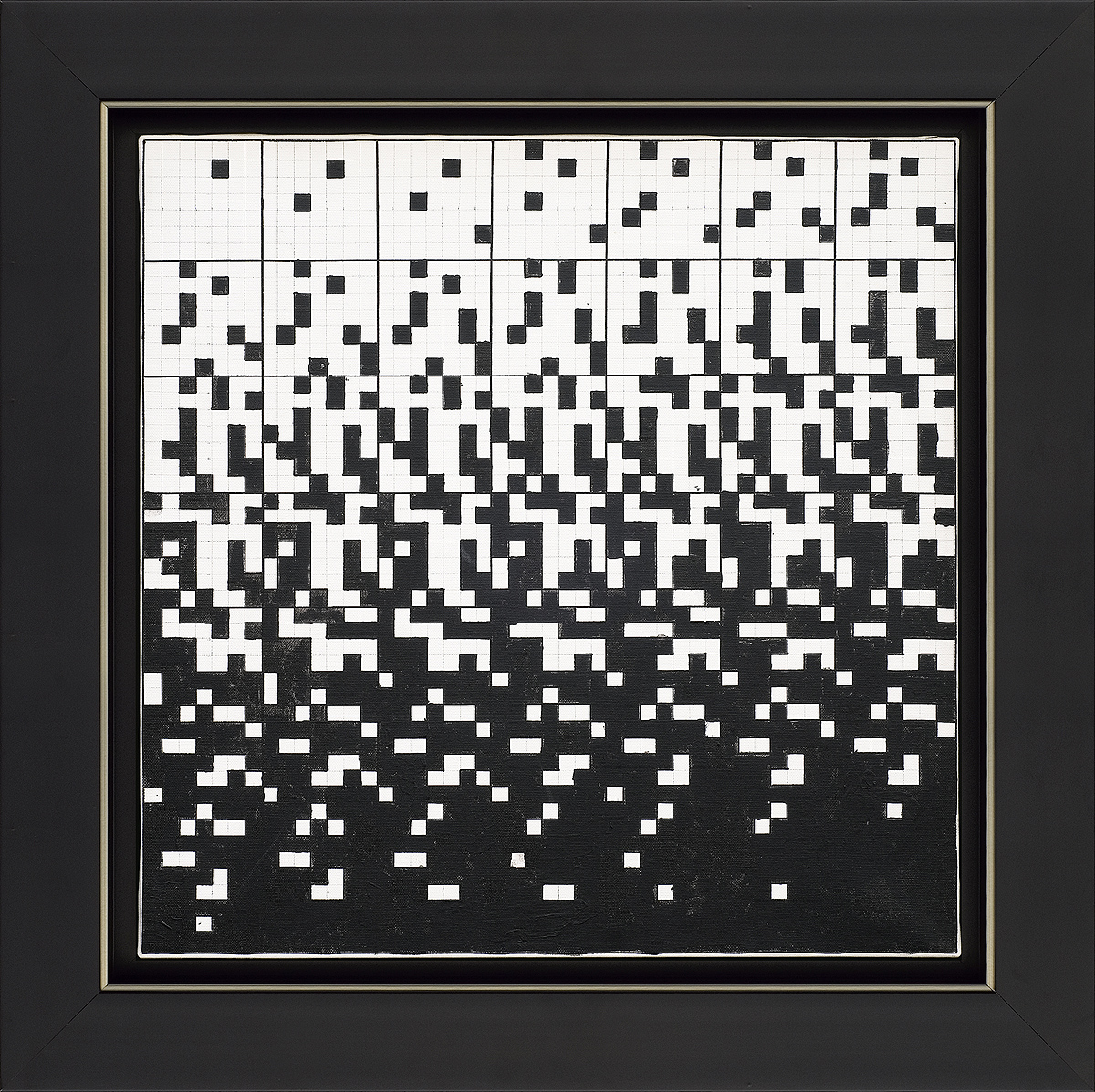Ryszard Winiarski (Lwów 1936 - Warszawa 2006) ukończył w 1959 Politechnikę Warszawską i podjął studia malarskie w ASP w Warszawie (1960-1966). Pod koniec studiów, w 1965 sformułował własny program artystyczny i zrealizował pierwsze prace z serii pt. „Próby wizualnej prezentacji rozkładów statystycznych“. Otrzymał za nie I nagrodę na Sympozjum Artystów i Naukowców w Puławach w 1966. Jako stałe moduły prac przyjął kwadraty w kolorach czerni i bieli, których kolejnością i rozmieszczeniem rządzi przypadek - rzut kostką do gry, losowanie lub wybór liczb przypadkowych. W 1970 wprowadził do swych prac trzeci wymiar w formie obrazów przestrzennych lub jako iluzję przestrzeni uzyskaną przez wykreślanie perspektywy linearnej. W 1971 powstały pierwsze obrazy z wmontowanymi lustrami. Od 1972 artysta aranżował też „gry“ z udziałem widzów, którzy stosując jego środki i metodę wypełniali płaszczyznę czy pomieszczenie własną „wystawą“. Od ok. 1983 Winiarski włączył do swych prac elementy znaczeniowe, symboliczne i odwołujące się do emocji, jak kształt krzyża, naturalne materiały i zabiegi na nich, np. gięcie (instalacje: Geometria w stanie napięcia, 1984, Czarny kwadrat czyli fruwająca geometria, 1984, Hommage dla Henryka Stażewskiego, 1989). Równolegle artysta od 1960 uprawiał scenografię teatralną, będąc autorem kilkudziesięciu realizacji w tej dziedzinie w teatrach całej Polski. Uczestniczył w wielkiej liczbie wystaw w Polsce i za granicą, w tym: Biennale w Sao Paulo 1969, I i II Biennale des Konstruktivismus, Norymberga 1969 i 1971, Konstrukcja w procesie, Łódź 1981 i Monachium 1985. Zmarł 4 grudnia 2006 w Warszawie.