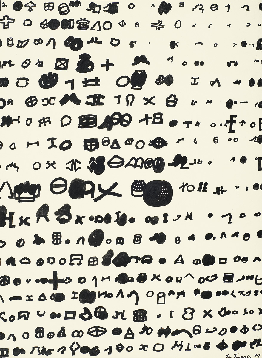 Jan Tarasin (Kalisz 11 IX 1926 - Warszawa 8 VIII 2009) studiował malarstwo w ASP w Krakowie pod kierunkiem prof. Zbigniewa Pronaszki (1946-1951). Jeszcze jako student zadebiutował na I Wystawie Sztuki Nowoczesnej w Krakowie w 1948/49. W połowie lat 50. stworzył cykle litografii: „Nowa Huta i jej mieszkańcy“, 1954, „Dom“, 1955). W pierwszym przeciwstawił się oficjalnemu optymizmowi, w drugim, operując symboliką martwej natury, zawarł treści egzystencjalne i odnoszące do niedawnego dramatu wojny. Po 1956 zaczął malować obrazy niefiguratywne. Układy wyodrębnionych elementów (określanych jako „przedmioty“) umieszczane były przez artystę na płaszczyźnie (cykl „Wnętrze“, 1957) ), lub w aluzyjnej przestrzeni (cykle „Uczta“, 1957, „Brzeg“, 1962-1964, „Przedmioty policzone“, od 1968, „Antykwariat“, 1968). Zasada ta utrzymuje się w jego malarstwie w następnych latach, różnice między okresami twórczości dotyczą sposobu opracowania „przedmiotów“ i ich usytuowania w przestrzeni obrazu lub wobec tła. Od lat 70. „przedmioty“ zmieniają się w graficzne, zwykle czarne znaki na jasnych tłach (cykl „Kolekcja“, od 1971). Tła z kolei bywają iluzyjnie przestrzenne, zróżnicowane walorowo, miękkie. W latach 90. artysta wrócił do kolorystycznego, bardziej malarskiego rozwiązywania zarówno znaków, jak i teł, często ciemnych lub przenikających się z „przedmiotami“ (cykl „Wylęgarnia przedmiotów“, 1992). Tarasin od 1962 jest członkiem „Grupy Krakowskiej“. W 1963-67 uczył na Wydziale Architektury Wnętrz krakowskiej ASP. W 1967 przeniósł się do Warszawy, w 1974 podjął pracę pedagogiczną na Wydziale Malarstwa ASP w Warszawie. W 1987-90 był rektorem tej uczelni. W 1976 otrzymał Nagrodę Krytyki Artystycznej im. Cypriana Kamila Norwida, w 1984 Nagrodę im. Jana Cybisa.; Nagroda na MB Sztuki w San Marino 1965. Równolegle z malarstwem zajmował się rysunkiem i grafiką - do lat 60. litografią, od 1974 serigrafią. W 1974-1981 wydał 8 autorskich „Zeszytów“ z serigrafiami i własnymi tekstami. W 1995 w Galerii Zachęta odbyła się wystawa artysty, której towarzyszył monograficzny katalog.