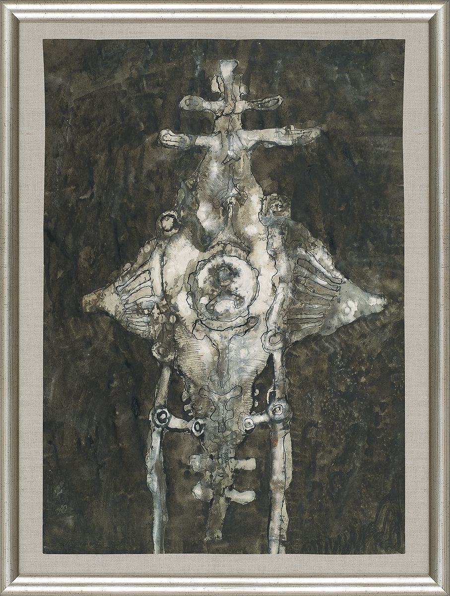 Jan Lebenstein (Brześć Litewski 1930 - Kraków 1999) w latach 1948-1954 studiował malarstwo w ASP w Warszawie pod kierunkiem prof. Eugeniusza Eibischa i Artura Nachta-Samborskiego. W 1955 wziął udział w wystawie w warszawskim Arsenale. Zaprzyjaźniony w czasie studiów z Mironem Białoszewskim, swą pierwszą wystawę indywidualną pokazał w 1956 w Teatrze na Tarczyńskiej. W 1959 zdobył Grand Prix de la Ville de Paris na I Biennale Młodych w Paryżu i w tym roku przeniósł się na stałe do Paryża. Po seriach "figur kreślonych" (na papierze milimetrowym) i "figur hieratycznych" z lat 1955-1958 maluje cykl "figur osiowych" (1958-1962), które wystawia w Paryżu i USA. Równolegle w 1960 zaczyna rysowane "karnety", rodzaj dziennika, który w przyszłości dostarczy motywów wykorzystanych w obrazach. W latach 1964-1965 maluje "Bestiarium", cykl fakturowych, archaizowanych stworów przypominających prehistoryczne wykopaliska. Bezpośrednio po nich wprowadza do swych obrazów postaci ludzkie i fantastyczne, odgrywające sceny ni to mitologiczne, ni to ze snu, często przesycone erotyką. W 1970 projektuje witraże dla Centre du Dialogue w Paryżu. W W 1971 otrzymuje obywatelstwo francuskie 1974 powstają gwasze inspirowane Folwarkiem zwierzęcym George'a Orwella. W latach 1976-1989 tworzy wyłącznie w technice gwaszu i pastelu, podejmując tematykę mitologiczną i zaczerpniętą z Biblii: cykle ilustracji do Księgi Hioba (wyd. 1979) i do Apokalipsy (wyd. 1986) w nowych przekładach Czesława Miłosza. W 1989 powraca do malarstwa olejnego (cykl "Pergamon"). Artysta otrzymał m. in. nagrodę Fundacji im. Alfreda Jurzykowskiego w 1976, Nagrodę Muzeum Archidiecezji Warszawskiej w 1985, Nagrodę im. Jana Cybisa w 1987.