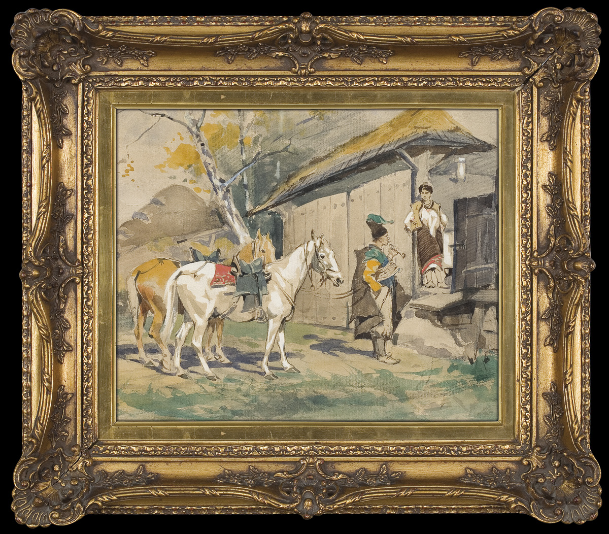 Józef Brandt (Szczebrzeszyn 1841 - Radom 1915) był jednym z najwybitniejszym polskich malarzy batalistów. Naukę malarstwa rozpoczął w Warszawie pod okiem Juliusza Kossaka. W latach 1858-1860 był w Paryżu, gdzie podjął studia inżynierskie. Niebawem zarzucił je jednak na rzecz malarstwa i kształcił się w pracowni Leona Cognieta. Po powrocie do kraju, w 1861 debiutował na wystawie w warszawskim TZSP. Od 1863 kontynuował studia w monachijskiej ASP u Franza Adama. W 1870 otworzył w Monachium własną pracownie i niebawem stał się przywódcą, „generałem” tamtejszej polskiej kolonii artystycznej i nauczycielem wielu malarzy. Po 1877 miesiące letnie spędzał w Orońsku, zapraszając na plenery grono swych uczniów. Został honorowym profesorem Akademii w Monachium (1878), członkiem Akademii w Berlinie (1877) i Pradze (1900). Odznaczony wysokimi orderami, wyróżniany medalami i nagrodami na międzynarodowych wystawach, cieszył się prawdziwie europejską sławą. Mieszkając i tworząc poza krajem zawsze wyraźnie podkreślał swoją polskość; dając jej wyraz choćby poprzez podpisywanie obrazów Józef Brandt z Warszawy. Malował bitwy, potyczki, podjazdy – epizody z historii polskich wojen kresowych i wojen szwedzkich XVII wieku, a także sceny rodzajowe – jeźdźców, polowania, jarmarki. Jego barwne, pełne ruchu i perfekcyjne warsztatowo obrazy podziwiano powszechnie, jako najlepszy przykład wysoko wówczas cenionej „szkoły polskiej”. Ale podczas gdy niemiecki czy francuski widz dostrzegał w nich przede wszystkim egzotykę i barwy Orientu, dla Polaków były to płótna „prawdziwe, naturalne, swojskie jak fragmenty z pamiętników Paska albo Rzewuskiego, przetransponowane na barwy i linie”. |