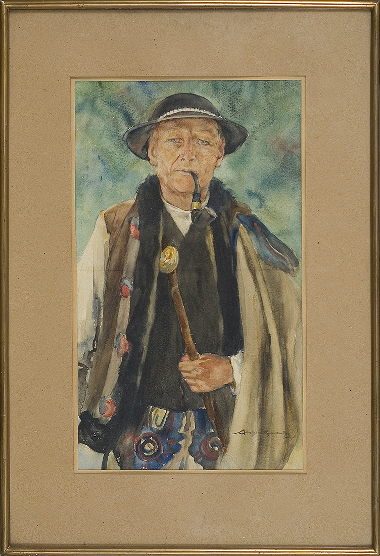 Aleksander Augustynowicz (Iskrzynia k. Krosna 1865 – Warszawa 1944) w latach 1883-1886 kształcił się w krakowskiej Szkole Sztuk Pięknych u Feliksa Szynalewskiego, Władysława Łuszczkiewicza i Jana Matejki. Następnie wyjechał do Monachium, gdzie w 1888 studiował w szkole Szymona Hollósy’ego. Podróżował do Włoch i na Węgry. Od roku 1890 stale mieszkał we Lwowie, gdzie, m.in. pracował nad malarską dekoracją foyer miejskiego Teatru. Po 1914 mieszkał w Zakopanem, a od 1921 w Poznaniu. Wystawiał bardzo dużo, m.in. w krakowskim i lwowskim TPSP oraz w TZSP w Warszawie. W roku 1896 na międzynarodowej wystawie w Berlinie otrzymał złoty medal za Autoportret. Malował przede wszystkim portrety, a także sceny rodzajowe, kwiaty, pejzaże z Tatr i Huculszczyzny. Często i chętnie posługiwał się mistrzowsko opanowaną techniką akwareli. Obrazy artysty cieszyły się dużą popularnością i uznaniem odbiorców.