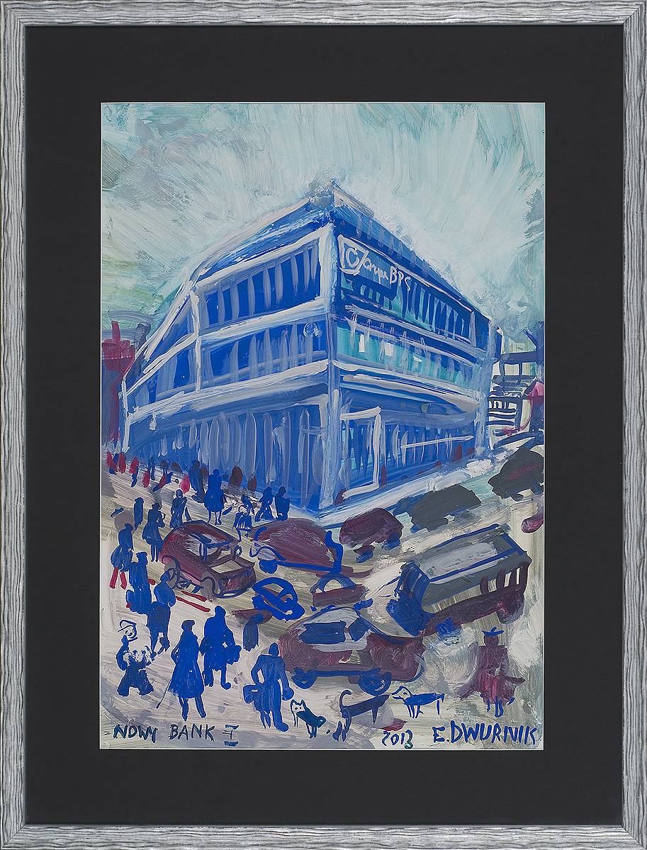 Edward Dwurnik (Radzymin 19 IV 1943 - Warszawa 28 X 2018) studiował malarstwo w ASP w Warszawie (1963-1970), jednak jako swego „mistrza“ wymienia Nikifora. Jego to prace, zobaczone po raz pierwszy w 1965, zainspirowały ówczesnego studenta III roku do narysowania pierwszych prac z cyklu „Podróże autostopem“, które kontynuował w nastepnych latach. W 1972-1978 powstawał cykl „Sportowcy“, w którym portretowane były, dodajmy - kąśliwie, typowe postaci z lat 70. Równolegle od 1975 powstawał cykl „Robotnicy“, który kulminował w okresie „Solidarności“ 1980-1981. Za prace z tego cyklu Dwurnik otrzymał w 1981 Nagrodę Krytyki Artystycznej im. Cypriana Kamila Norwida, natomiast za obrazy z cyklu „Warszawa“ (1981), proroczo zapowiadające stan wojenny - Nagrodę Kulturalną „Solidarności“ podziemnej w 1983. W latach 80. malarstwo Dwurnika przybrało wyraz ekspresyjny i dramatyczny. Powstające w tej dekadzie obrazy miały niejednokrotnie wymowę polityczną, przybierały też kostium historyczny, tak czy inaczej odnoszący się do współczesnych spraw i realiów. Cykl „Droga na Wschód“ (1989-91) upamiętniał ofiary stalinizmu, natomiast cykl „Od Grudnia do Czerwca“ (1990-94) - ofiary stanu wojennego. Zarówno ideowe, jak i czysto malarskie walory tych prac przyniosły artyście ogromne uznanie, zarówno w kraju jak i za granicą. Jego wyrazem była prestiżowa nagroda Fundacji Coutts & Co w Zurychu (1992). W latach 90. powstają cykle będące kontynuacją „Podróży autostopem“: „Niebieskie miasta“ (od 1993) i „Diagonale“ (od 1996), jak również kompozycje nowego typu, jak widoki morskie (cykl „Błękitne“, 1992-93) czy cykl „Wyliczanka“ (1996-99). Artysta wiele wystawia, miał ok. 100 wystaw indywidualnych w Polsce i za granicą, brał też udział w licznych wystawach i festiwalach krajowych i międzynarodowych, m.in.: X Biennale Sztuki Współczesnej, Menton 1974, Documenta 7, Kassel 1982, 5th Biennale, Sydney 1985, XIX Biennale Sztuki, Sao Paulo 1987; Olimpiada Sztuki, Seul 1988. Równolegle z malarstwem uprawiał rysunek, collage, grafikę warsztatową (litografia, techniki metalowe, kserografia, stemple) i użytkową (ilustracja, plakaty do własnych wystaw indywidualnych).