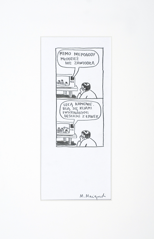 Marcin Maciejowski (Babice k. Krakowa 14 VI 1974, mieszka w Krakowie) ukończył Technikum Budowlane w Krzeszowicach, następnie w latach 1994-1997 studiował na Wydziale Architektury Politechniki Krakowskiej. Studia te przerwał po III roku. Równolegle w latach 1996-2000 studiował na Wydziale Grafiki ASP w Krakowie. Dyplom uzyskał w pracowni plakatu prof. Piotra Kunce. Przez cały czas nauki w Akademii, od 1996 do 2001 wspólnie z Rafałem Bujnowskim, Wilhelmem Sasnalem, Markiem Firkiem i Józefem Tomczykiem Kurosawą tworzył Grupę Ładnie. Jej program zawiera się w nazwie – z dobrą wolą postrzegając rzeczywistość tak, jak ją kreują środki masowego przekazu – telewizja, tabloidy, reklama – artyści próbowali malować w guście tzw. prostego człowieka. Nieuchronnym efektem takiego eksperymentu była karykatura mentalności społeczeństwa przełomu wieków, szczególnie tzw. pokolenia NIC. Styl komiksu, satyrycznego rysunku czy uproszczonego plakatu utrzymuje artysta do dziś, z reguły uzupełniając obrazy pisanym komentarzem. Należy do najbardziej znanych i najwyżej cenionych współczesnych artystów polskich. Obecnie reprezentowany przez Galerie Meyer Kainer z Wiednia. Wiele wystawia, od 1999 prezentując wystawy indywidualne w kraju i za granicą. Od 2000 zamieszcza w „Przekroju” rysunki satyryczne, jest autorem komiksów i billboardów, w tym słynnego „Jak tu teraz żyć” (prezentującego rodzinę bezrobotnych), wydanego przez Galerię Zewnętrzną AMS. W 2002 otrzymał Paszport „Polityki” w dziedzinie plastyki – „za spostrzegawczość i dowcip oraz nowatorskie wykorzystanie stylistyki reklamy do opisu emocji naszych czasów”.