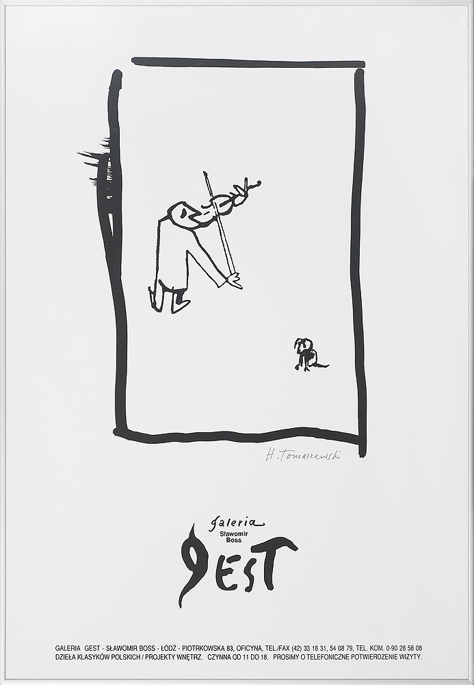 Henryk Tomaszewski (Warszawa1914-Warszawa 2005) ukończył ASP w Warszawie w 1931. Główny okres jego twórczości przypada na lata powojenne, kiedy to stał się jednym z głównych przedstawicieli fenomenu tzw. polskiej szkoły plakatu. Tomaszewski położył tu zasługi podwójnie - jako twórca i jako pedagog, pod którego opieką kształcili się młodsi plakaciści i graficy użytkowi tego nurtu. Indywidualny styl plakatów Tomaszewskiego, trudny do zdefiniowania, choć wyraziście odróżniający jego prace od innych, bazuje na trafnej metaforze, podanej lekkim, pełnym finezji i humoru rysunkiem oraz szczególnie starannie i adekwatnie do tematu opracowanym liternictwem. Twórczość plakatowa przyniosła artyście wiele nagród, poczynając od pięciu złotych medali zdobytych na Międzynarodowej Wystawie Plakatu w Wiedniu (1948), poprzez I nagrodę na VIII Biennale Sztuki w Sao Paulo (1963), I nagrodę na Międzynarodowej Wystawie Plakatu w Fort Collins, USA (1981), po złoty i srebrny medal na XII Międzynarodowym Biennale Plakatu w Warszawie (1988). Artysta otrzymał również nagrodę Fundacji Alfreda Jurzykowskiego (1984). Równolegle z plakatem tworzy rysunki, ilustracje, okładki książkowe itp., zawierając w nich (zwłaszcza w rysunkach) ogromny ładunek wyrafinowanego humoru i intelektualnej zabawy, gry słów i skojarzeń.