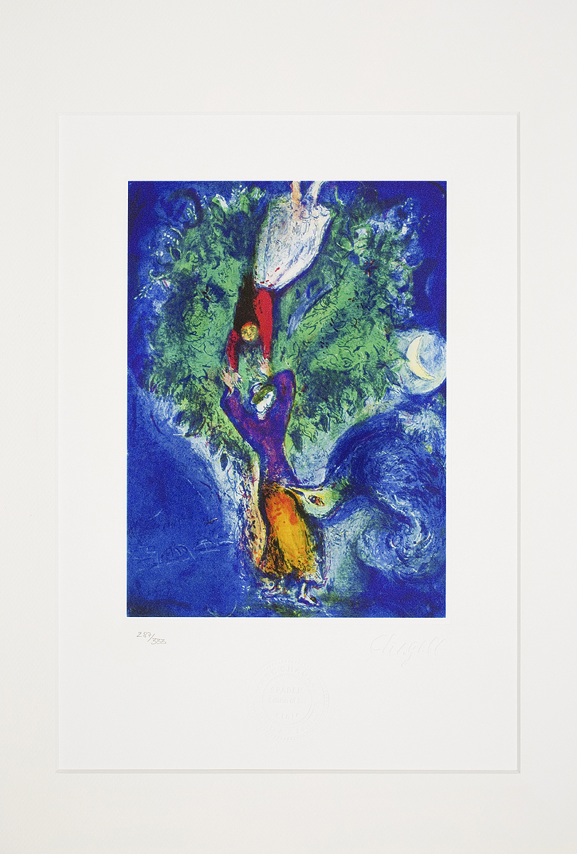 Marc Chagall uczył się rysunku u witebskiego malarza nazwiskiem Juda Pen, następnie od 1907 studiował w Akademii petersburskiej. W 1910 wyjechał na stypendium do Paryża. Zamieszkał w La Ruche na Montparnassie, wszedł do kręgu artystów, wśród których byli m.in. Modigliani, Soutine, Delaunay. W 1914 wrócił do Witebska, w 1915 poślubił Bellę (zm. 1944), muzę i bohaterkę wielu obrazów. W latach 1915-1917 mieszkał w Sankt Petersburgu, gdzie zastała go rewolucja. Mianowany komisarzem sztuk pięknych na obszar Witebska, założył tam i prowadził w latach 1918-1919 szkołę artystyczną, której profesorami byli m.in. Kazimierz Malewicz i El Lissitzky. W 1919 przeniósł się do Moskwy, gdzie do 1922 był kierownikiem artystycznym Państwowego Teatru Żydowskiego. W 1923 ostatecznie opuścił Rosję, osiedlając się w Paryżu. We Francji spędził resztę życia, z przerwą w latach 1941-1947, kiedy to schronił się w Nowym Jorku. Jego styl, wykształcony w młodości niezależnie od równoległych kierunków w sztuce, pozostał w ciągu życia artysty mało zmieniony. Wyobraźnia i sposób obrazowania Chagalla, zbliżone do sztuki naiwnej, wpisały się najsilniej w nurt surrealizmu, stając się jego znaczącym rozszerzeniem. Chagall łączył poetyckość i cudowność swych fantazji z rozwiniętym warsztatem malarza-kolorysty. Był też utalentowanym i płodnym grafikiem (cykle ilustracji do "Martwych dusz" Gogola, 1923-1927, "Bajek" La Fontaine’a, 1927-1930, Biblii, 1931-1955 – każdy cykl liczył ponad 100 plansz w technikach metalowych). Zajmował się scenografią (projekty dla Metropolitan Opera w Nowym Jorku, 1945, Opery w Paryżu, 1958), malarstwem monumentalnym (plafon w Operze paryskiej, 1963-1964), projektował witraże, dekoracje ceramiczne.