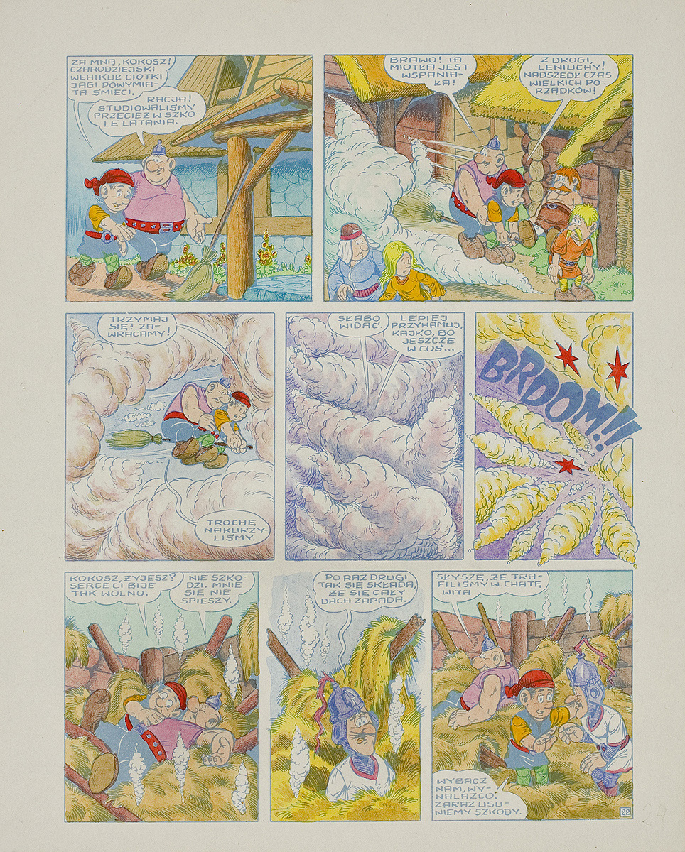 Janusz Christa (Wilno 1934 - Sopot 2008) - rysownik i scenarzysta, jeden z największych polskich twórców komiksu. Stworzył prawie 5000 komiksowych pasków, 700 plansz i olbrzymią ilość ilustracji. Wydał około 40 albumów komiksowych w łącznym nakładzie 10 milionów egzemplarzy. Autor jednej z najpopularniejszych polskich serii komiksowych - Kajko i Kokosz oraz Kajtek i Koko. Jako rysownik zadebiutował w 1956 roku na łamach miesięcznika "Jazz" całostronicowym komiksem bez dymków Opowieść o Armstrongu, następnie publikował w magazynie "Przygoda" jednostronicowe historyjki o dwóch chłopcach, Kuku i Ryku. W 1958 roku Christa związał się z "Wieczorem Wybrzeża" i drukował w nim najpierw przygody Kajtka-Majtka, potem Kajtka i Koka (z najdłuższą polską epopeją komiksową W Kosmosie). W 1975 roku serię przeniósł do "Świata Młodych", a wkrótce potem do magazynu "Relax". Na początku lat 90. XX wieku przestał tworzyć. Odznaczony medalem "Zasłużony Kulturze Gloria Artis".