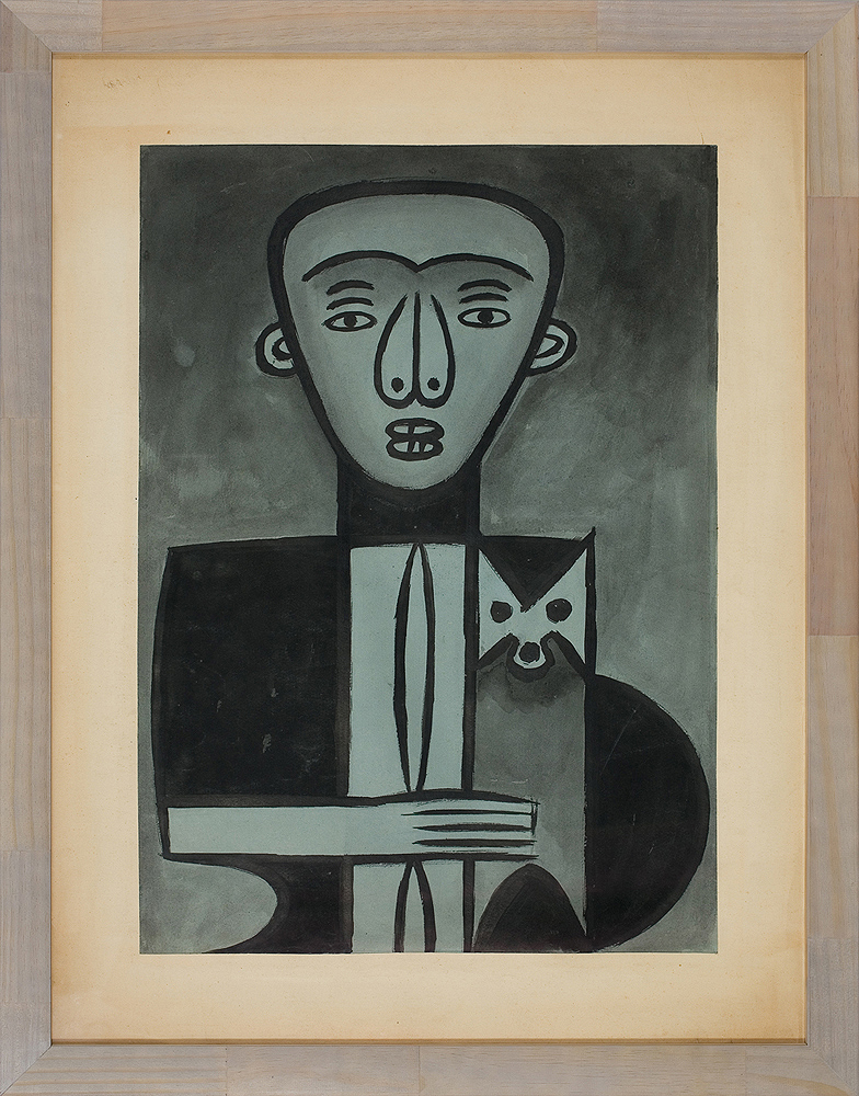 tusz pędzel lawowany, papier zielonoszary