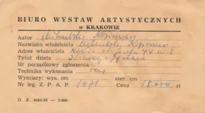 Kazimierz Mikulski (Kraków 1918 - Kraków 1998) rozpoczął studia malarskie przed II wojną światową w ASP w Krakowie, kontynuował je w latach 1939-1940 pod kierunkiem prof. Fryderyka Pautscha w Kunstgewerbeschule, powstałej za okupacji w miejsce Akademii. Po wojnie ukończył dwuletnie studia aktorskie w Studio Dramatycznym przy Starym Teatrze w Krakowie i do 1948 pracował jako aktor. Jednocześnie w 1945 ukończył Warsztat Filmowy Młodych. W latach 1948-1979 był kierownikiem plastycznym i scenografem Teatru Groteska w Krakowie, dla którego projektował lalki, kostiumy, dekoracje itp. Równolegle cały czas zajmował się malarstwem i działalnością w kręgu Tadeusza Kantora, zrazu jako członek Gru-py Młodych Plastyków, a od 1957 w Grupie Krakowskiej, której był współzałożycielem i prezesem w latach 1965-1967. Był też członkiem zespołu teatru Cricot 2, grał m.in. w spektaklach Kurka wodna, Nadobnisie i koczkodany, Umarła klasa oraz we własnej sztuce Cyrk. W swych obrazach z drugiej poł. lat 40. artysta przedstawiał lekkie, linearne formy unoszące się w pustych przestrzeniach. Było to malarstwo zarazem surrealistyczne i abstrakcyjne. Lecz już ok. 1950 zaczął malować w charaktery-styczny dlań sposób - odrzucając abstrakcję, prezentował niezliczone warianty i układy kilku ulubionych motywów (głowa lub postać kobiety-lalki, koty, motyle).