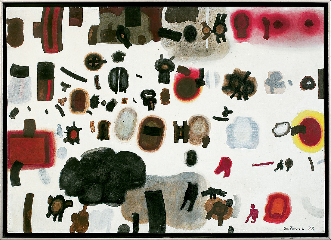 Jan Tarasin (Kalisz 11 IX 1926 - Warszawa 8 VIII 2009) studiował malarstwo w ASP w Krakowie pod kierunkiem prof. Zbigniewa Pronaszki (1946-1951). Jeszcze jako student zadebiutował na I Wystawie Sztuki Nowoczesnej w Krakowie w 1948/49. W połowie lat 50. stworzył cykle litografii: „Nowa Huta i jej mieszkańcy“, 1954, „Dom“, 1955). W pierwszym przeciwstawił się oficjalnemu optymizmowi, w drugim, operując symboliką martwej natury, zawarł treści egzystencjalne i odnoszące do niedawnego dramatu wojny. Po 1956 zaczął malować obrazy niefiguratywne. Układy wyodrębnionych elementów (określanych jako „przedmioty“) umieszczane były przez artystę na płaszczyźnie (cykl „Wnętrze“, 1957) ), lub w aluzyjnej przestrzeni (cykle „Uczta“, 1957, „Brzeg“, 1962-1964, „Przedmioty policzone“, od 1968, „Antykwariat“, 1968). Zasada ta utrzymuje się w jego malarstwie w następnych latach, różnice między okresami twórczości dotyczą sposobu opracowania „przedmiotów“ i ich usytuowania w przestrzeni obrazu lub wobec tła. Od lat 70. „przedmioty“ zmieniają się w graficzne, zwykle czarne znaki na jasnych tłach (cykl „Kolekcja“, od 1971). Tła z kolei bywają iluzyjnie przestrzenne, zróżnicowane walorowo, miękkie. W latach 90. artysta wrócił do kolorystycznego, bardziej malarskiego rozwiązywania zarówno znaków, jak i teł, często ciemnych lub przenikających się z „przedmiotami“ (cykl „Wylęgarnia przedmiotów“, 1992). Tarasin od 1962 jest członkiem „Grupy Krakowskiej“. W 1963-67 uczył na Wydziale Architektury Wnętrz krakowskiej ASP. W 1967 przeniósł się do Warszawy, w 1974 podjął pracę pedagogiczną na Wydziale Malarstwa ASP w Warszawie. W 1987-90 był rektorem tej uczelni. W 1976 otrzymał Nagrodę Krytyki Artystycznej im. Cypriana Kamila Norwida, w 1984 Nagrodę im. Jana Cybisa.; Nagroda na MB Sztuki w San Marino 1965. Równolegle z malarstwem zajmował się rysunkiem i grafiką - do lat 60. litografią, od 1974 serigrafią. W 1974-1981 wydał 8 autorskich „Zeszytów“ z serigrafiami i własnymi tekstami. W 1995 w Galerii Zachęta odbyła się wystawa artysty, której towarzyszył monograficzny katalog.