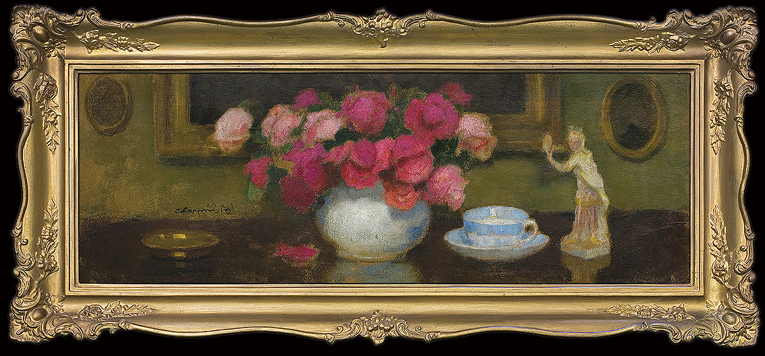 Alfons Karpiński (Rozwadów, dziś dzielnica Stalowej Woli 1875 - Kraków 1961) w latach 1891-1899 studiował w krakowskiej Szkole Sztuk Pięknych pod kierunkiem Floriana Cynka, Izydora Jabłońskiego, Władysława Łuszczkiewicza i Leona Wyczółkowskiego, a następnie kształcił się jeszcze u Antona Ažbégo w Monachium (1903), u Kazimierza Pochwalskiego w Wiedniu, a od 1907 także w Paryżu. Podróżował do Włoch i Londynu. Stale mieszkał w Krakowie; związany z tamtejszym środowiskiem skupionym wokół „Zielonego Balonika” projektował dekoracje do przedstawień kabaretu. Należał do Tow. Artystów Polskich „Sztuka”, grupy „Zero”, był członkiem wiedeńskiego stowarzyszenia „Secesja” i krakowskiego TPSP. Uczestniczył w wielu wystawach w kraju i za granicą. W czasie I wojny światowej służył w armii austriackiej. Na bogatą twórczość artysty składają się wczesne sceny rodzajowe z podkrakowskiej wsi, pejzaże i portrety, wśród nich zwłaszcza portrety kobiece, które przyniosły mu szczególną popularność. Z czasem głównym – obok portretu – tematem jego obrazów stały się martwe natury z kwiatami, dekoracyjne kompozycje o stonowanej gamie barwnej. Artysta zajmował się także grafiką i ilustratorstwem.