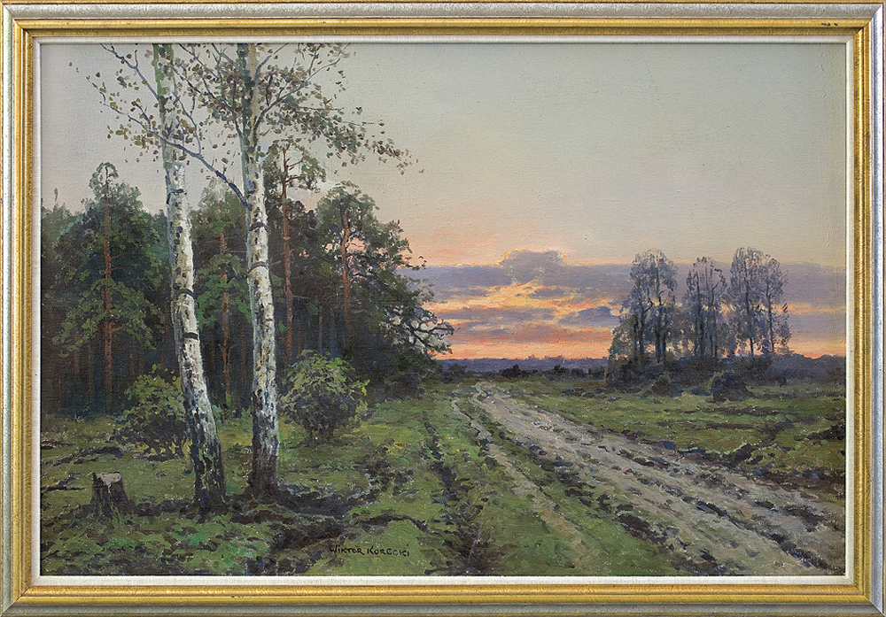 Wiktor Korecki (Kamieniec Podolski 1890 - Komorów k. Warszawy 1980) - malarz pejzażysta - gimnazjum ukończył w Kijowie, tam też studiował w Szkole Rysunkowej Aleksandra Muraszki. Po studiach wrócił do Kamieńca Podolskiego, skąd w roku 1921 wyjechał do Warszawy. Tu miał pracownię na rogu ulic Tamki i Cichej. Niestety zgromadzone tam obrazy spłonęły w czasie powstania 1944 roku. Po powstaniu artysta przebywał w obozie w Pruszkowie skąd trafił do obozu pracy w Lipsku. Do kraju powrócił w roku 1946 i zamieszkał w Komorowie pod Warszawą, a później w Milanówku. Jego nastrojowe krajobrazy emanujące spokojem i pogodą cieszyły się zawsze dużą popularnością. Korecki najczęściej malował pejzaże zimowe z motywem leśnej drogi i strumienia wijącego się wśród śniegów, a obok nich także wiosenne, letnie czy jesienne widoki z Mazowsza.