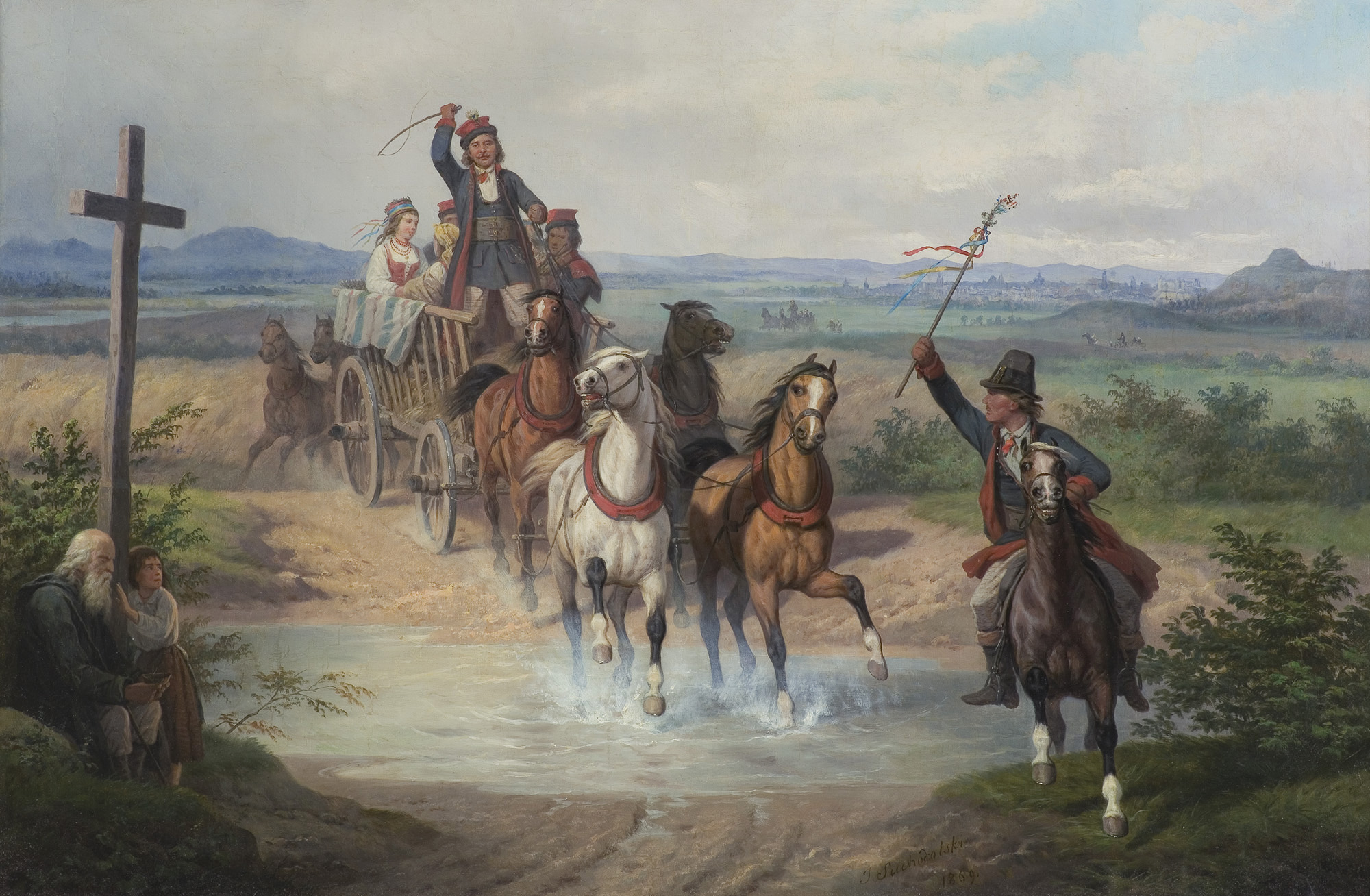 January Suchodoklski (Grodno 1797 - Boim k. Węgrowa 1875) nazywany „polskim Vernetem” malarz-batalista January Suchodolski we wcześniejszym okresie swojej twórczości był samoukiem, który służąc w wojsku amatorsko zajmował się malarstwem. Uczestniczył w powstaniu listopadowym, a po jego upadku wyjechał w roku 1832 do Rzymu, gdzie studiował w pracowni i pod kierunkiem Horace’a Verneta. Do Warszawy wrócił w roku 1837. W 1839 wyjeżdżał do Petersburga, mianowany członkiem tamtejszej Akademii Sztuk Pięknych. W roku 1847 podróżował do Paryża. Był jednym z założycieli warszawskiego Towarzystwa Zachęty Sztuk Pięknych (1859). Malował obrazy batalistyczne, najczęściej z wojen napoleońskich, portrety konne i sceny rodzajowe z motywem żołnierzy i smukłych, pięknych koni arabskich. Patriotyczne treści, żywy koloryt i precyzyjny rysunek obrazów Suchodolskiego przyniosły mu prawdziwą sławę i powodzenie.