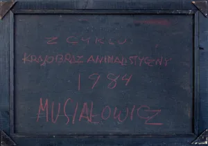 Henryk Musiałowicz (Gniezno 5 I 1914 - Warszawa 24 II 2015) od 1930 uczył się w Państwowej Szkole Sztuk Zdobniczych i Przemysłu Artystycznego w Poznaniu. W 1936 uzyskał absolutorium na Wydziale Malarstwa Dekoracyjnego i Witrażownictwa. W 1937 podjął studia malarskie w warszawskiej ASP pod kierunkiem Felicjana Kowarskiego i Leonarda Pękalskiego (dyplom pod kierunkiem tego pierwszego uzyskał w 1947). Lata okupacji spędził w Warszawie, kontynuując twórczość artystyczną (wykonywał w tym czasie m.in. ekslibrisy). Współpracował z Departamentem Informacji Delegatury Rządu na Kraj. Od 1940 związany był z grupą absolwentów warszawskiej uczelni, działającą w latach okupacji w tzw. Bacciarellówce na terenie Zamku Królewskiego, a po wojnie znaną jako grupa „Warszawa“. W sztuce Musiałowicza, zwłaszcza bezpośrednio po wojnie, silnie zaznaczyły się wątki związane z martyrologią, tragedią Powstania Warszawskiego, zburzeniem Warszawy, której ruiny upamiętnił w cyklu rysunków z 1945-1946. Poszukując formy odpowiedniej dla przeżyć wojennych, znalazł ją w sztuce Holendrów, zwłaszcza Rembrandta, którego twórczość poznał podczas podróży w 1956. Odtąd na stałe zdominował jego malarstwo ciemny koloryt, uspokojona, niekiedy hieratyczna kompozycja form zaledwie sugerujących figury ludzkie, bogata faktura i połyskliwość powierzchni. Z czasem artysta zaczął konstruować formy przestrzenne z drewna, jak zwykle pokrytego bogatą warstwą malarską, w wydłużonych stojących kształtach. Musiałowicz do 1983 aktywnie działał w ZPAP. Był członkiem międzynarodowych organizacji artystycznych, w tym kilku włoskich, jak Accademia Tibertina w Rzymie (od 1965), Accademia Italiana delle Arti e del Lavoro w Parmie (od 1979), Accademia Europea, Calvatone (od 1985). W 2002 wielką retrospektywę jego twórczości zorganizowało Muzeum Narodowe w Poznaniu.