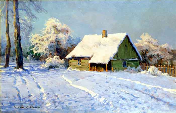Wiktor Korecki (Kamieniec Podolski 1890 - Komorów k. Warszawy 1980) - malarz pejzażysta - gimnazjum ukończył w Kijowie, tam też studiował w Szkole Rysunkowej Aleksandra Muraszki. Po studiach wrócił do Kamieńca Podolskiego, skąd w roku 1921 wyjechał do Warszawy. Tu miał pracownię na rogu ulic Tamki i Cichej. Niestety zgromadzone tam obrazy spłonęły w czasie powstania 1944 roku. Po powstaniu artysta przebywał w obozie w Pruszkowie skąd trafił do obozu pracy w Lipsku. Do kraju powrócił w roku 1946 i zamieszkał w Komorowie pod Warszawą, a później w Milanówku. Jego nastrojowe krajobrazy emanujące spokojem i pogodą cieszyły się zawsze dużą popularnością. Korecki najczęściej malował pejzaże zimowe z motywem leśnej drogi i strumienia wijącego się wśród śniegów, a obok nich także wiosenne, letnie czy jesienne widoki z Mazowsza.