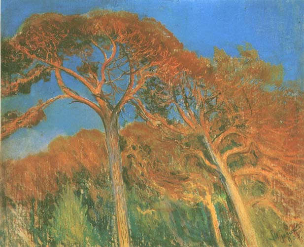 Leon Wyczółkowski (Huta Miastkowska k. Siedlec 1852 - Warszawa 1936) - malarz, grafik i pedagog, był jednym z najwybitniejszych artystów polskich tworzących na przełomie XIX i XX w. Studia artystyczne rozpoczął w warszawskiej Klasie Rysunkowej pod kierunkiem Wojciecha Gersona i Aleksandra Kamińskiego (1869-1873), następnie kontynuował je w monachijskiej Akademii Sztuk Pięknych u Aleksandra Wagnera (1875-1877), w Krakowie u Jana Matejki (1877/78) i podczas dwukrotnych wyjazdów do Paryża (1878 i 1889). Po studiach zamieszkał we Lwowie, później przeniósł się do Warszawy. Lata 1883-1893 spędził podróżując po Ukrainie i Podolu. W 1895 przeniósł się do Krakowa powołany na wykładowcę tamtejszej Szkoły Sztuk Pięknych. W latach następnych wiele podróżował – do Włoch, Francji, Hiszpanii, Holandii, Anglii. Należał do grona członków-założycieli Towarzystwa Artystów Polskich „Sztuka”. Wiele wystawiał tak w kraju, jak i za granicą. Lata 1929-1936 spędził w Poznaniu i Gościeradzu, dojeżdżając do Warszawy, gdzie (od 1934) prowadził katedrę grafiki w Akademii Sztuk Pięknych. Malował krajobrazy, portrety, sceny rodzajowe, martwe natury i kwiaty. Chętnie posługiwał się techniką pastelu i akwareli, był wybitnym grafikiem, zajmował się też rzeźbą.