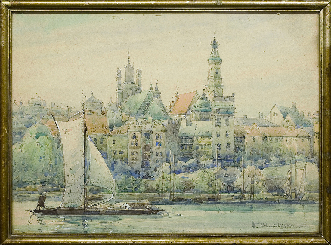 Władysław Chmieliński (Warszawa 1911 - Warszawa 1979) był malarzem związanym z Warszawą, gdzie stale mieszkał i pracował. W latach 1926-1931 studiował w warszawskiej Miejskiej Szkole Sztuk Zdobniczych i Malarstwa (dawna Klasa Rysunkowa). Wiodącym tematem jego obrazów były widoki miejskie, malowane olejno i akwarelą. W latach 1935-1938 stworzył cykl akwarel przedstawiających obiekty polskiej architektury; wśród nich, widoki Sandomierza, Krakowa, Kazimierza nad Wisłą, a także wnętrza zabytkowych kościołów czy pałaców, m.in. Zamku Królewskiego w Warszawie i Pałacu w Wilanowie. Malował także pejzaże i wiejskie sceny rodzajowe – kuligi, sanny, zaprzęgi, wesela, konie na tle krajobrazu. W latach 1967-1969 wyjeżdżał na dłuższe pobyty do Danii. W latach 1936-1939 artysta używał także pseudonimu „Władysław Stachowicz”.
