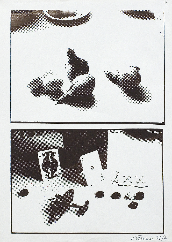 Jan Tarasin (Kalisz 11 IX 1926 - Warszawa 8 VIII 2009) studiował malarstwo w ASP w Krakowie pod kierunkiem prof. Zbigniewa Pronaszki (1946-1951). Jeszcze jako student zadebiutował na I Wystawie Sztuki Nowoczesnej w Krakowie w 1948/49. W połowie lat 50. stworzył cykle litografii: „Nowa Huta i jej mieszkańcy“, 1954, „Dom“, 1955). W pierwszym przeciwstawił się oficjalnemu optymizmowi, w drugim, operując symboliką martwej natury, zawarł treści egzystencjalne i odnoszące do niedawnego dramatu wojny. Po 1956 zaczął malować obrazy niefiguratywne. Układy wyodrębnionych elementów (określanych jako „przedmioty“) umieszczane były przez artystę na płaszczyźnie (cykl „Wnętrze“, 1957) ), lub w aluzyjnej przestrzeni (cykle „Uczta“, 1957, „Brzeg“, 1962-1964, „Przedmioty policzone“, od 1968, „Antykwariat“, 1968). Zasada ta utrzymuje się w jego malarstwie w następnych latach, różnice między okresami twórczości dotyczą sposobu opracowania „przedmiotów“ i ich usytuowania w przestrzeni obrazu lub wobec tła. Od lat 70. „przedmioty“ zmieniają się w graficzne, zwykle czarne znaki na jasnych tłach (cykl „Kolekcja“, od 1971). Tła z kolei bywają iluzyjnie przestrzenne, zróżnicowane walorowo, miękkie. W latach 90. artysta wrócił do kolorystycznego, bardziej malarskiego rozwiązywania zarówno znaków, jak i teł, często ciemnych lub przenikających się z „przedmiotami“ (cykl „Wylęgarnia przedmiotów“, 1992). Tarasin od 1962 jest członkiem „Grupy Krakowskiej“. W 1963-67 uczył na Wydziale Architektury Wnętrz krakowskiej ASP. W 1967 przeniósł się do Warszawy, w 1974 podjął pracę pedagogiczną na Wydziale Malarstwa ASP w Warszawie. W 1987-90 był rektorem tej uczelni. W 1976 otrzymał Nagrodę Krytyki Artystycznej im. Cypriana Kamila Norwida, w 1984 Nagrodę im. Jana Cybisa.; Nagroda na MB Sztuki w San Marino 1965. Równolegle z malarstwem zajmował się rysunkiem i grafiką - do lat 60. litografią, od 1974 serigrafią. W 1974-1981 wydał 8 autorskich „Zeszytów“ z serigrafiami i własnymi tekstami. W 1995 w Galerii Zachęta odbyła się wystawa artysty, której towarzyszył monograficzny katalog.