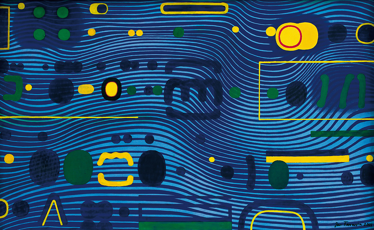 Jan Tarasin (Kalisz 11 IX 1926 - Warszawa 8 VIII 2009) studiował malarstwo w ASP w Krakowie pod kierunkiem prof. Zbigniewa Pronaszki (1946-1951). Jeszcze jako student zadebiutował na I Wystawie Sztuki Nowoczesnej w Krakowie w 1948/49. W połowie lat 50. stworzył cykle litografii: „Nowa Huta i jej mieszkańcy“, 1954, „Dom“, 1955). W pierwszym przeciwstawił się oficjalnemu optymizmowi, w drugim, operując symboliką martwej natury, zawarł treści egzystencjalne i odnoszące do niedawnego dramatu wojny. Po 1956 zaczął malować obrazy niefiguratywne. Układy wyodrębnionych elementów (określanych jako „przedmioty“) umieszczane były przez artystę na płaszczyźnie (cykl „Wnętrze“, 1957) ), lub w aluzyjnej przestrzeni (cykle „Uczta“, 1957, „Brzeg“, 1962-1964, „Przedmioty policzone“, od 1968, „Antykwariat“, 1968). Zasada ta utrzymuje się w jego malarstwie w następnych latach, różnice między okresami twórczości dotyczą sposobu opracowania „przedmiotów“ i ich usytuowania w przestrzeni obrazu lub wobec tła. Od lat 70. „przedmioty“ zmieniają się w graficzne, zwykle czarne znaki na jasnych tłach (cykl „Kolekcja“, od 1971). Tła z kolei bywają iluzyjnie przestrzenne, zróżnicowane walorowo, miękkie. W latach 90. artysta wrócił do kolorystycznego, bardziej malarskiego rozwiązywania zarówno znaków, jak i teł, często ciemnych lub przenikających się z „przedmiotami“ (cykl „Wylęgarnia przedmiotów“, 1992). Tarasin od 1962 jest członkiem „Grupy Krakowskiej“. W 1963-67 uczył na Wydziale Architektury Wnętrz krakowskiej ASP. W 1967 przeniósł się do Warszawy, w 1974 podjął pracę pedagogiczną na Wydziale Malarstwa ASP w Warszawie. W 1987-90 był rektorem tej uczelni. W 1976 otrzymał Nagrodę Krytyki Artystycznej im. Cypriana Kamila Norwida, w 1984 Nagrodę im. Jana Cybisa.; Nagroda na MB Sztuki w San Marino 1965. Równolegle z malarstwem zajmował się rysunkiem i grafiką - do lat 60. litografią, od 1974 serigrafią. W 1974-1981 wydał 8 autorskich „Zeszytów“ z serigrafiami i własnymi tekstami. W 1995 w Galerii Zachęta odbyła się wystawa artysty, której towarzyszył monograficzny katalog.