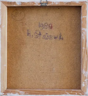 Henryk Stażewski (Warszawa 9 I 1894 - Warszawa 10 VI 1988) studiował w Szkole Sztuk Pięknych w Warszawie w latach 1913-1920. W początkach kariery malował martwe natury. Przejściowo wystawiał z ugrupowaniem „Formiści” (1922). Wziął też udział w Wystawie Nowej Sztuki w Wilnie w 1923. O tego czasu tworzył pod wpływem konstruktywizmu. Obok kompozycji malarskich trudnił się grafiką książkową, projektował wnętrza, sprzęty, a także scenografie – były to w większości prace teoretyczne i studyjne. Polskie i międzyna-rodowe ugrupowania awangardy, z którymi wystawiał i współpracował jako publicysta, to kolejno: „Blok” (1924-1926), „Praesens” (1926-1930), „Cercle et Carré” (1929-1931), „Abstraction-Création” (1931-1939), „a. r.” (1932-1939). Należał też do Koła Artystów Grafików Reklamowych (1933-1939). W 1930 był współorganizatorem zbiórki dzieł artystów międzynarodowej awangardy przeznaczonych dla muzeum łódzkiego (obecnie w Muzeum Sztuki w Łodzi). Po II wojnie mieszkał i działał w Warszawie. W latach 40. i 50. podejmował próby dostosowania się do postulatów sztuki figuratywnej. Z tego okresu pochodzą rysunkowe i malarskie kompozycje o tematyce pracy, budowy, a także projekty monumentalne. Po 1956, uznawany powszechnie za patrona polskiej awangardy, uprawiał już wyłącznie abstrakcję o konstruktywistycznym rodowodzie. Tworzył cykle prac, będących studiami płaszczyzn, linii, kolorów w różnych układach względem siebie. Przy pozorach chłodnej perfekcji umiał nasycić je emocją bezpośredniego dotknięcia, śladu ręki. Obok malarstwa i form pochodnych, jak collages, reliefy, multiple, tworzył formy przestrzenne i grafikę (autoryzował serigraficzne repliki swoich prac). Był laureatem wielu nagród i odznaczeń krajowych i zagranicznych, w tym Nagrody Herdera, Wiedeń 1972.