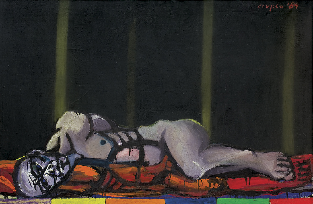 Marian Czapla (Gacki na Kielecczyźnie 28 VII 1946 - Warszawa 12 I 2016) studiował na Wydziale Malarstwa ASP w Warszawie w latach 1966-1972. Uzyskał dyplom w pracowni prof. Stefana Gierowskiego. W 1972 podjął pracę pedagogiczną w macierzystej uczelni. Od 1990 był profesorem, prowadził własną pracownię malarstwa. W latach 1974-1979 był członkiem grupy „Symplex S4“, którą tworzyło grono młodych absolwentów warszawskiej ASP, zainteresowanych możliwością kontynuowania tradycji polskiego koloryzmu z jednej, unizmu Władysława Strzemińskiego z drugiej strony. Początkowo tworzył abstrakcyjne kompozycje budowane z barwnych, zamaszyście kładzionych smug i plam. Od końca lat 70. w jego malarstwie przeważyła figuracja. Wyróżniającym się wątkiem twórczości Czapli były tematy i odniesienia religijne. Zainteresowania te pozostały aktualne w jego sztuce w latach 80., kiedy połączył je z tematyką aktualną (cykl poświęcony górnikom z „Wujka“). W pracach z lat 90. (cykle „Upadek“, „Ecce Homo“ i in.) artysta malował monumentalne figury o mocnej tektonice, podkreślonej dodatkowo zdecydowanymi barwami i konturami, ujęte w dynamicznych ruchach i skrętach ciała. Umieszczone zazwyczaj na płaskich tłach jednolitego koloru, w umownej przestrzeni, zdają się zmagać z ograniczającym je kadrem obrazu. W 2002 roku z okazji 30-lecia pracy twórczej Mariana Czapli Muzeum Narodowe w Kielcach przygotowało wystawę jego prac, której towarzyszył naukowo opracowany katalog.